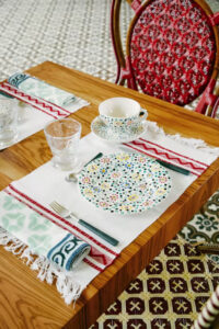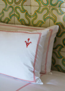 Com apenas 13 quartos, o Vermelho Melides tem aquele clima de “férias entre amigos”. Louboutin recorreu à arquiteta portuguesa Madalena Caiado, com quem já tinha trabalhado em sua casa em Lisboa, para assinar o projeto, que teve apoio luxuoso da amiga Carolina Irving, designer têxtil e editora de decoração da Vogue e Elle, para ambientar a casa com os símbolos de sua marca.