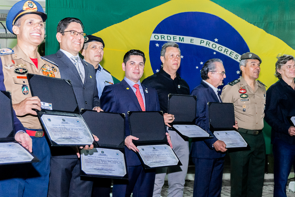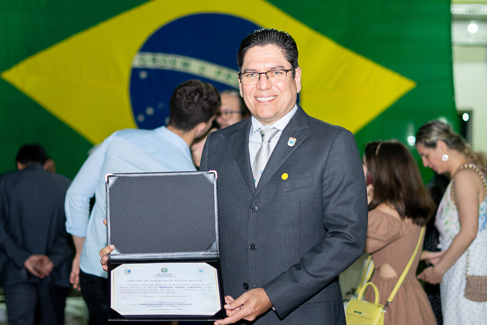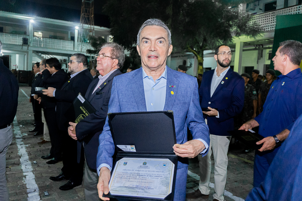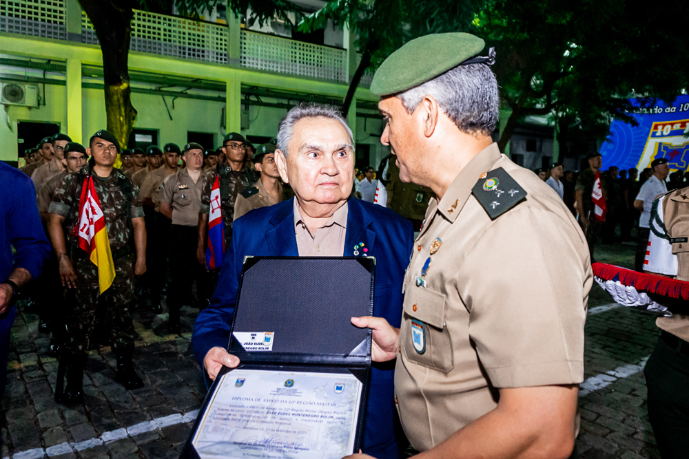 A 10ª Região Militar celebrou seu 81º aniversário em uma cerimônia exclusiva para convidados, na sexta-feira (15). Durante o evento, personalidades relevantes da sociedade receberam a comenda “Amigo da 10ª RM”, incluindo o CEO do Grupo IN de Comunicação, Comodoro do Iate Clube, Pompeu Vasconcelos, o presidente do Ideal Clube, Amarílio Cavalcante, João Eudes Montenegro Rolim, Tarcísio Porto Júnior e Henrique Daniel Carvalho das mãos do comandante da 10ª RM, o General de Divisão, Pinto Sampaio.