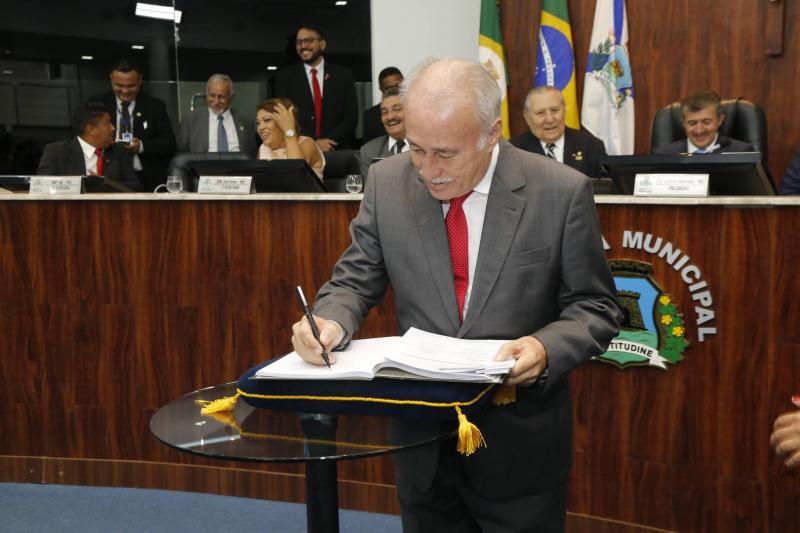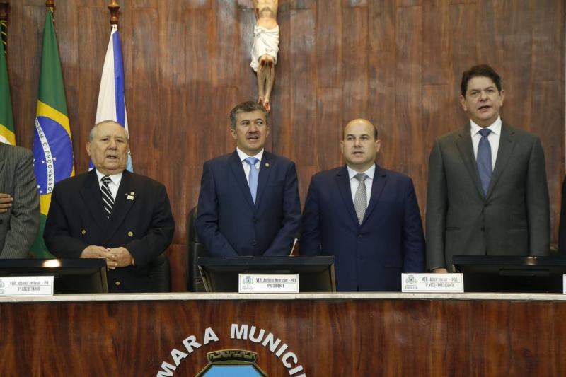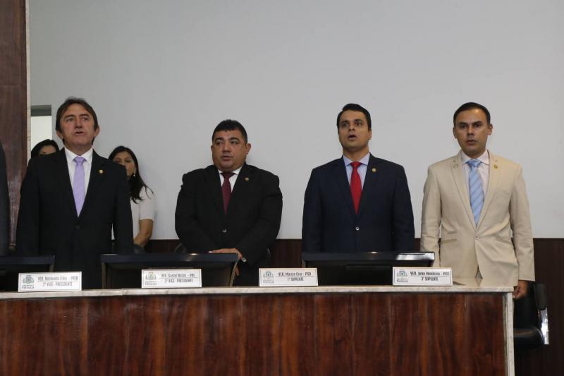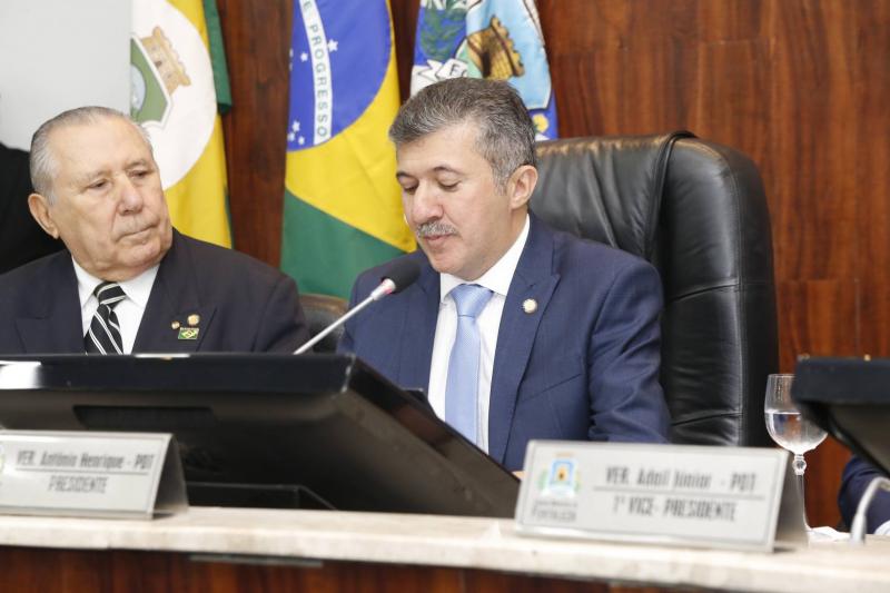 Em prestigiada solenidade na Câmara Municipal de Fortaleza, a nova mesa diretora da CMFor tomou posse para o mandato de dois anos. Empossado como presidente da casa, o vereador Antônio Henrique afirmou em seu primeiro pronunciamento no cargo que o objetivo da gestão, formada por Adail Júnior, Raimundo Filho e Gardel Rolim, é aproximar a Câmara da população. Entre os projetos prioritários para este ano, o vereador citou a revisão do plano diretor de Fortaleza e, segundo ele, a população poderá participar deste processo por meio de reuniões e audiências públicas. Na nova gestão, o vereador Idalmir Feitosa permanece como primeiro-secretário, o vereador Ziêr Férrer assume como 2º Secretário e Lucimar Martins como 3º Secretário.