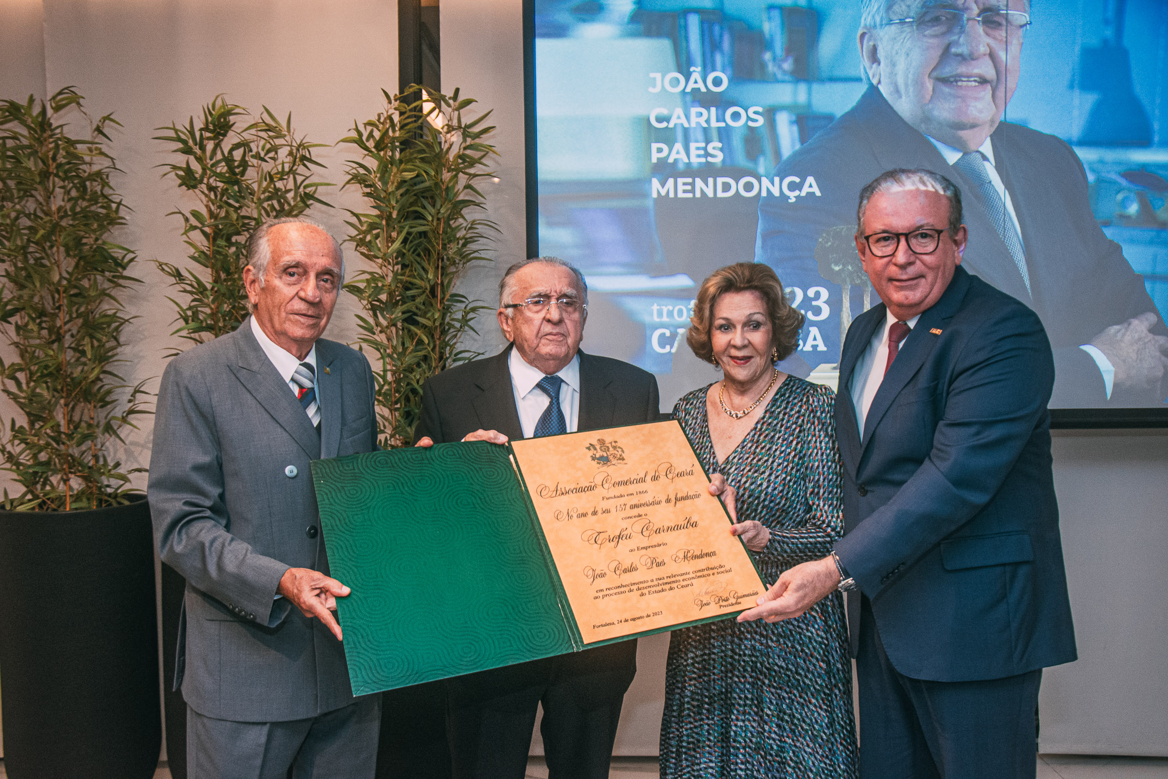 O presidente do Grupo JCPM, João Carlos Paes Mendonça, recebeu, na noite de quinta-feira (24), o Troféu Carnaúba, a maior honraria da Associação Comercial do Ceará (ACC), entidade com 157 anos de existência. A solenidade, presidida por João Porto Guimarães, liderança à frente da ACC, aconteceu na sede da Federação das Indústrias do Estado do Ceará (FIEC) e contou com a presença de empresários do setor e de representantes de entidades ligadas ao varejo e indústria. Confira os registros!