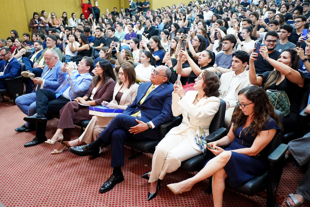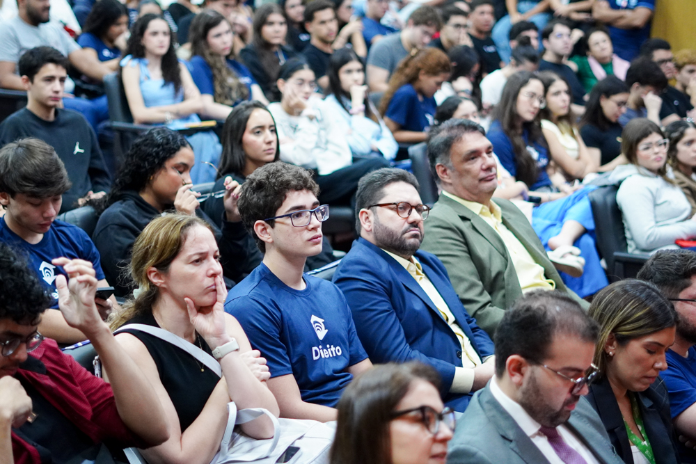 A abertura do semestre do curso de Direito da Universidade de Fortaleza (Unifor) ganhou tom especial com a Aula Magna ministrada por Teodoro Silva Santos, magistrado do Superior Tribunal de Justiça (STJ). Realizado na quinta-feira (5), no auditório da Reitoria, o encontro reuniu professores, estudantes e integrantes da comunidade acadêmica em uma manhã dedicada ao debate sobre formação jurídica e instituições. Com auditório completamente lotado, o evento superou a marca de 400 participantes, confirmando o interesse e a relevância do tema entre os alunos do curso. A presença do ministro cearense, que compartilhou reflexões sobre o papel do STJ e sua própria trajetória profissional, marcou o início do semestre em clima de inspiração e diálogo com as novas gerações do Direito. Confira os registros!