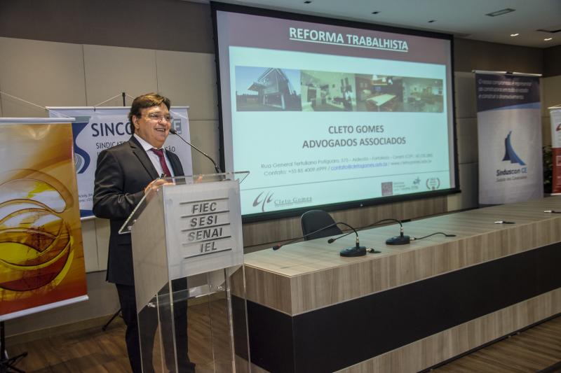 Para expor todos os detalhes das novas regras trabalhistas, o Sinduscon-CE, sob o comando de André Montenegro, convocou o advogado Cleto Gomes, sócio-diretor da Cleto Gomes Advogados Associados, para ministrar a palestra “A reforma trabalhista: saiba o que mudou”. O meeting, realizado pelo Sinduscon-CE em parceria com o Sinconpe e o Sindienergia, aconteceu no auditório José Flávio, na Fiec.
