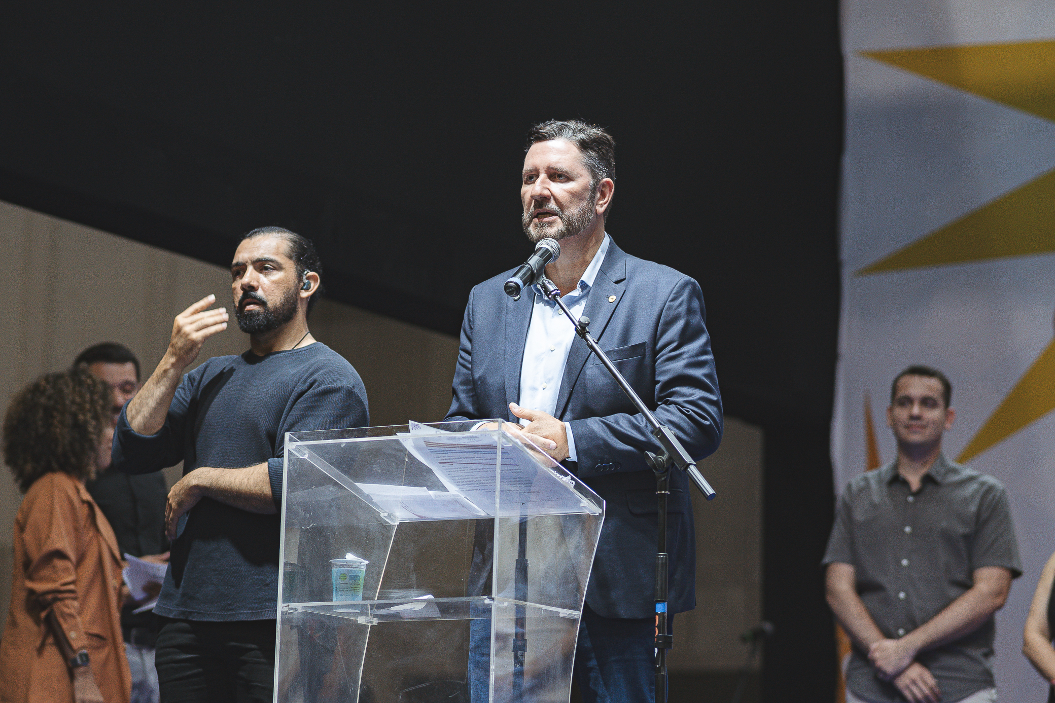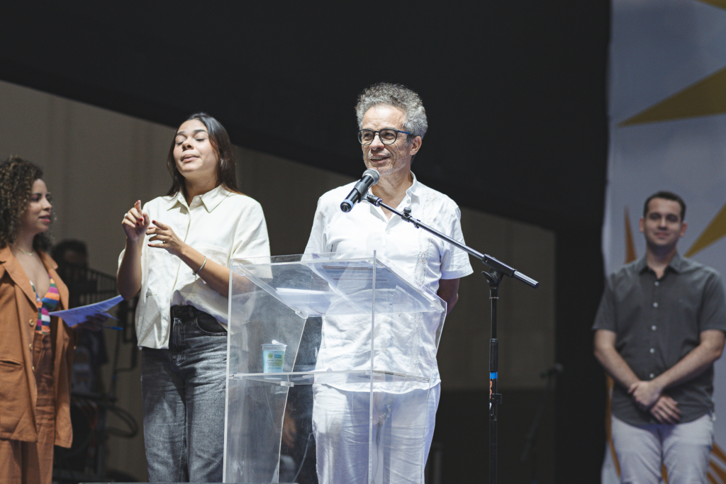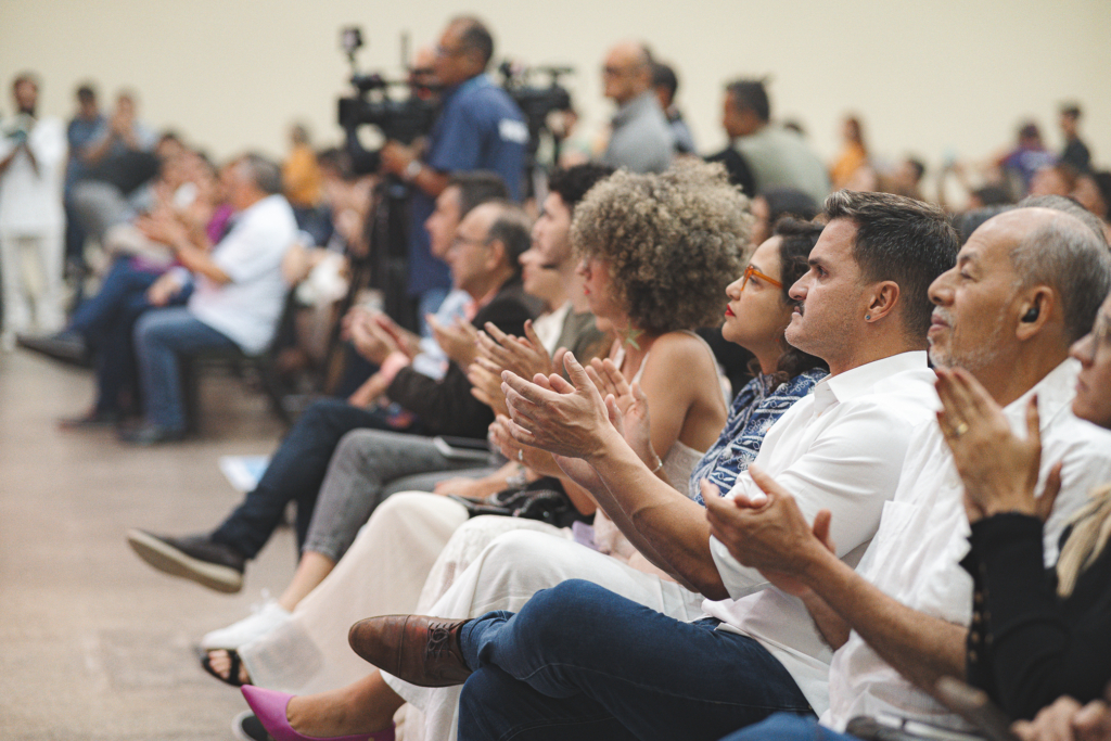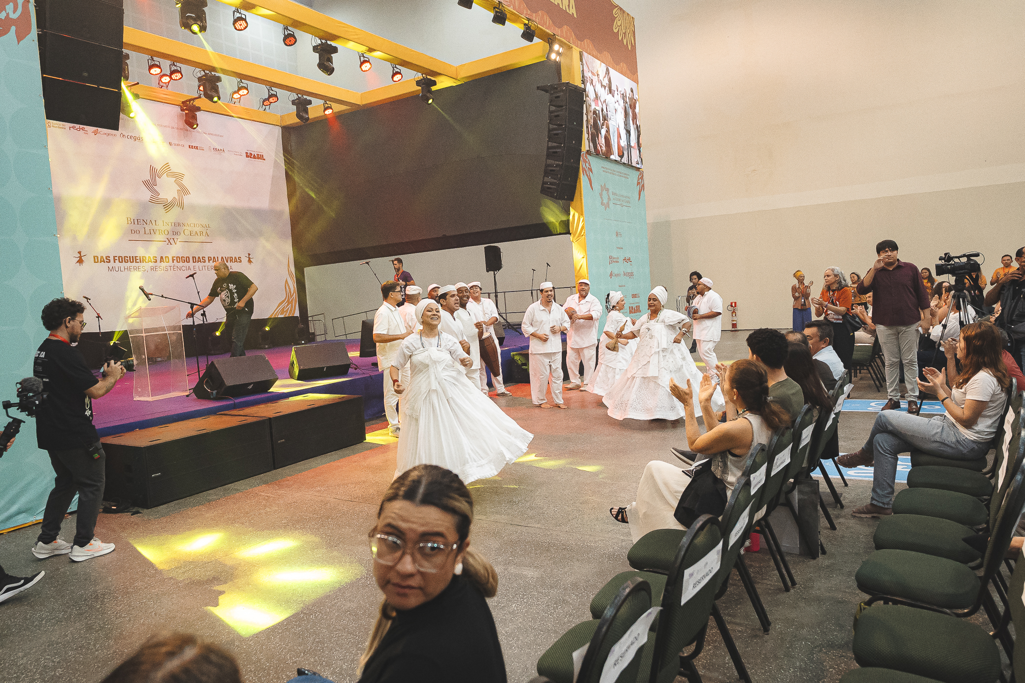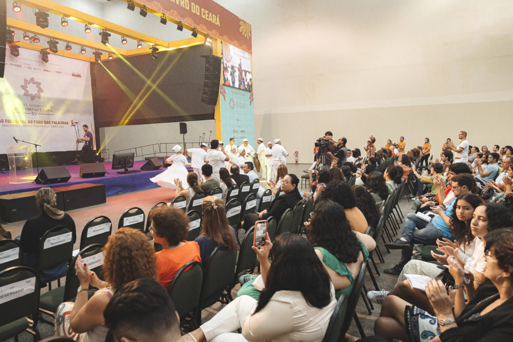 O Centro de Eventos do Ceará recebeu, na sexta-feira (4), a cerimônia de abertura da XV Bienal Internacional do Livro do Ceará. O evento contou com a presença do governador Elmano de Freitas, da secretária de Cultura do Estado, Luisa Cela, e demais autoridades que prestigiaram o início da programação literária e artística que segue até o dia 13 de abril. Com entrada gratuita, a Bienal tem como tema central a força da literatura produzida por mulheres, com curadoria inteiramente feminina. Entre as atrações do primeiro dia, o público acompanhou o desfile Iracemas: Mulheres à beira-luz, apresentações da Escola Indígena Jenipapo-Kanindé e do Grupo Afro Alagbará, além do show poético-musical Também Guardamos Pedras Aqui, de Luiza Romão. A cerimônia oficial foi precedida por cortejos, homenagens a nomes do cordel cearense e momentos que evidenciaram a diversidade cultural presente em toda a programação.