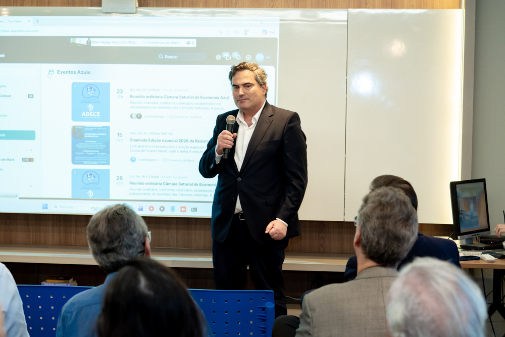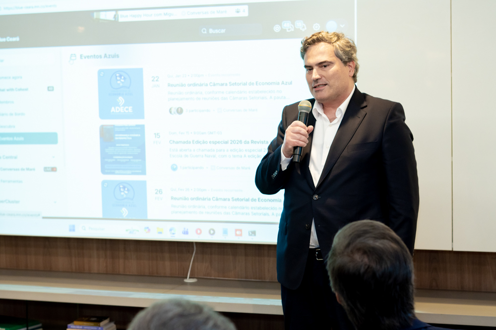 A quinta-feira (15) terminou em clima de networking estratégico com o Blue Happy Hour, encontro promovido pela Câmara Setorial da Economia Azul da Adece (governo estadual) para debater os rumos da economia do mar no Ceará. O evento aconteceu no lounge da APSV Advogados, em Fortaleza, e trouxe como destaque a participação do economista Miguel Carvalho Marques, reconhecido como uma das principais vozes da economia azul de Portugal. O momento da Blue Ceará proporcionou uma excelente oportunidade para discutir a economia azul no contexto do acordo Mercosul–UE, fortalecendo pontes entre instituições públicas, privadas e acadêmicas. Marcaram presença representantes da Capitania dos Portos do Ceará, Iate Clube de Fortaleza, portos cearenses, universidades e empresários convidados. Confira os melhores momentos!