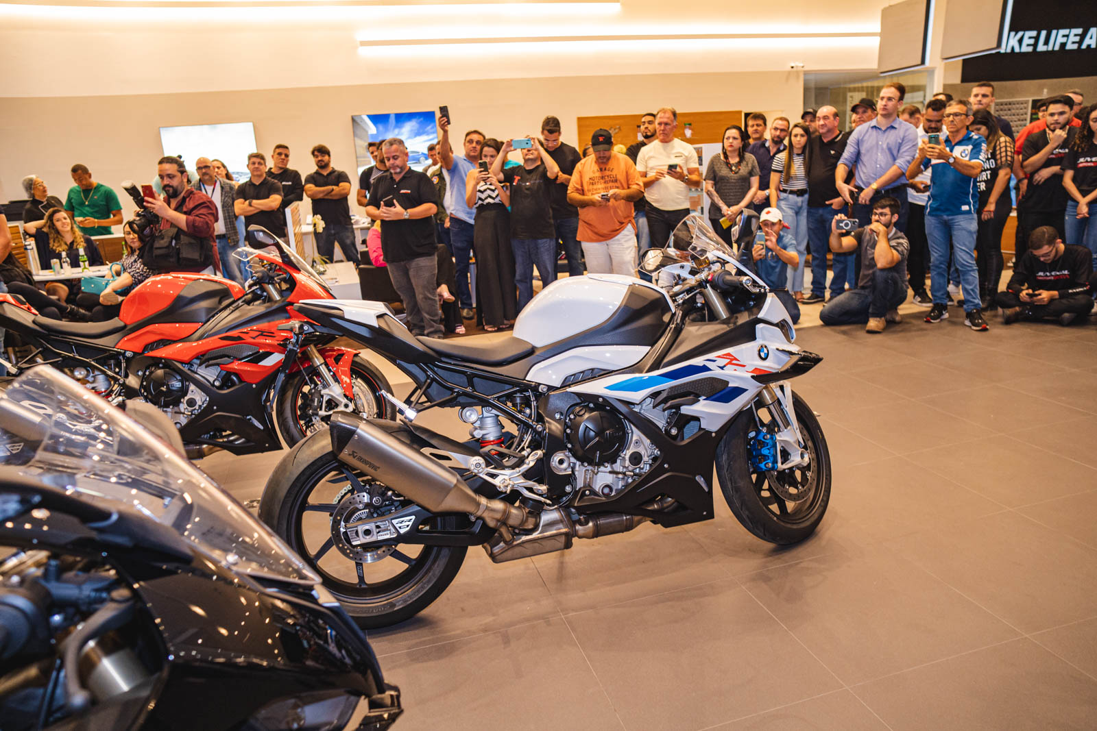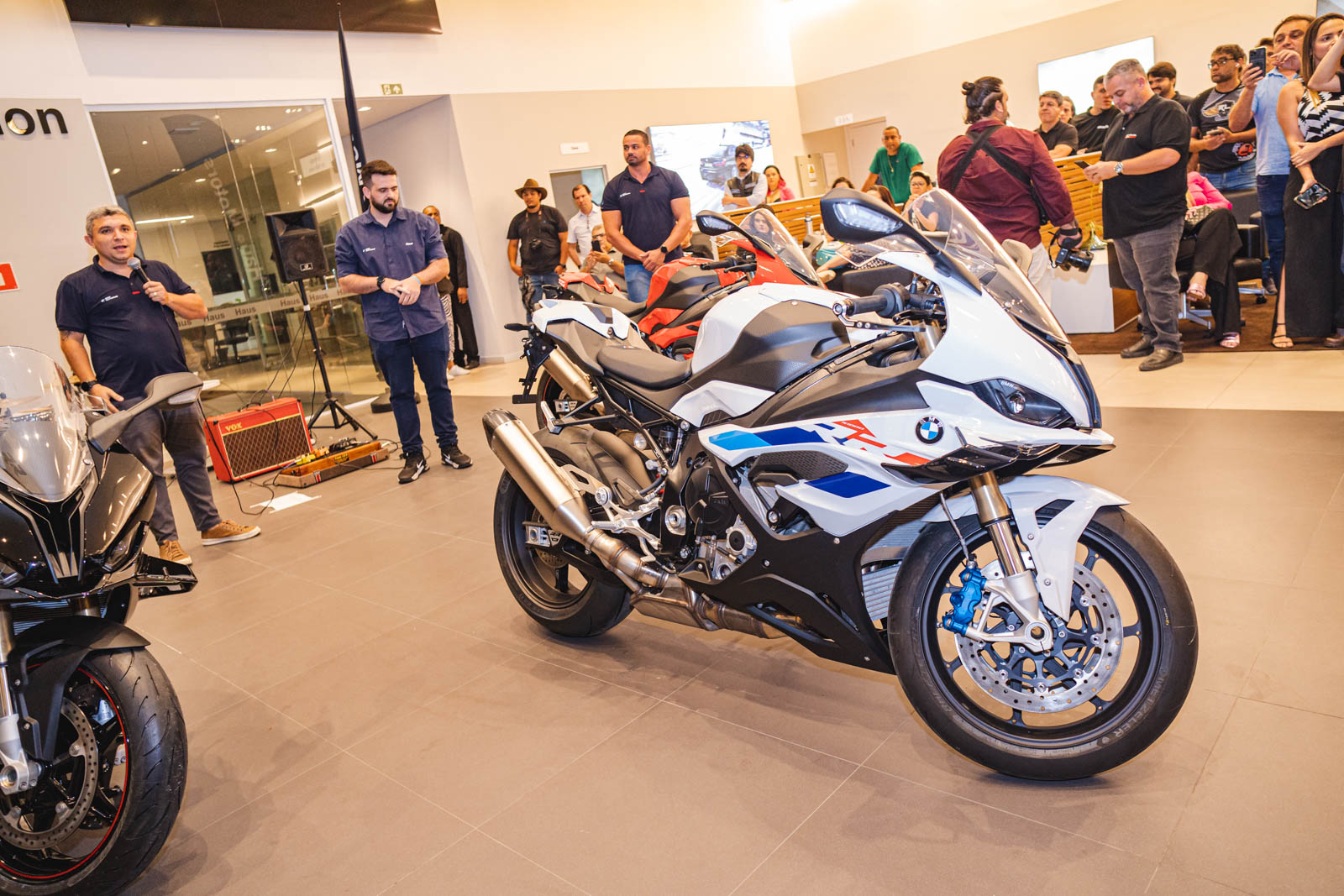 Na noite de quinta-feira (11), os aficionados por velocidade deram um rasante na concessionária da BMW Haus Motors Fortaleza para conferir com exclusividade o lançamento da nova moto S1000 RR. Com 210 cv e torque de 113 Nm à 11.000 rpm, a S 1000 RR é um ícone entre as superesportivas e continua trazendo o que há de mais moderno em termos de tecnologia embarcada. Além disso, a supermáquina possui um visual de tirar o fôlego e um desempenho acima da média, resultado da versatilidade da nova tecnologia BMW ShiftCam, que permite extrair máxima potência e torque, não apenas em faixas altas de rotação, mas principalmente em faixas baixas/médias de giro. Confira os registros!