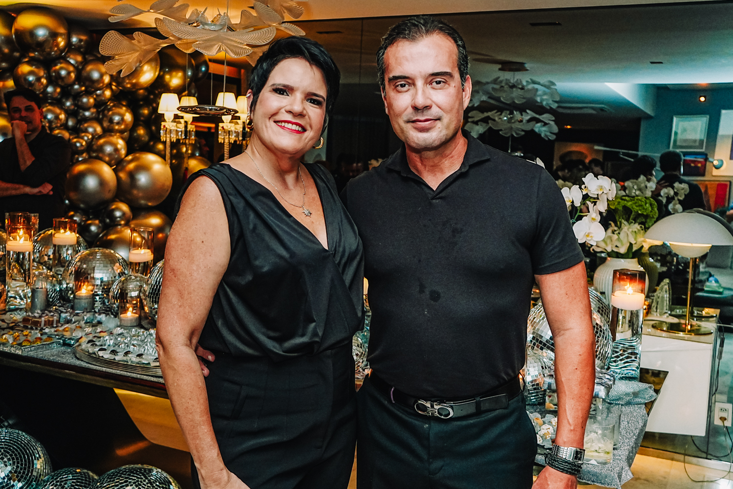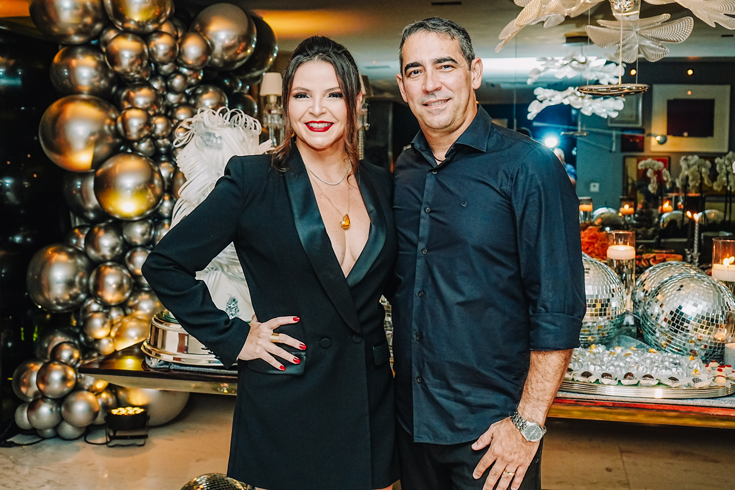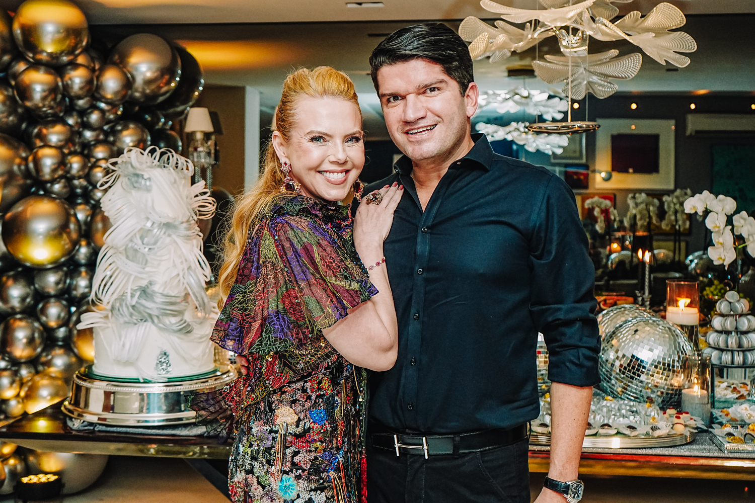 Exalando beleza e elegância com um lindo vestido criado por Lino Villaventura, Branca Mourão abriu as portas de seu alinhado endereço e celebrou a chegada da nova idade em grande estilo na noite de sexta-feira (19). A sessão parabéns contou com uma linda e moderna decoração repleta de balões e globos espelhados criada pela própria aniversariante, refletindo todo o seu bom gosto. A produção da bem-cuidada festa ficou sob a batuta do Grupo Celebre. Por lá, a anfitriã curtiu o happening ao lado do marido Racine Mourão, dos filhos Anik, Thiago e Liz, e de seus queridos convidados, que, entre um drink e outro, dançavam ao som classudo do sax de Jorge Doudement e das batidas eletrizantes dos DJs Itaquê e Dani di Deus. Além disso, os cantores Fernando Amorim e Vivian Fernandes deram o tom extra de animação à party com seus repertórios envolventes. No script, bolo da Cacau2you, doces da Docemel, buffet por Lia Freire, do Barbra’s, bem-vividos por Célia Bezerra, pâtisserie e macarrons da Antoinette Boutique de Doces, bolo de rolo by Prisce e cocktail da 1ne, 2wo, drink. Aos flashes!