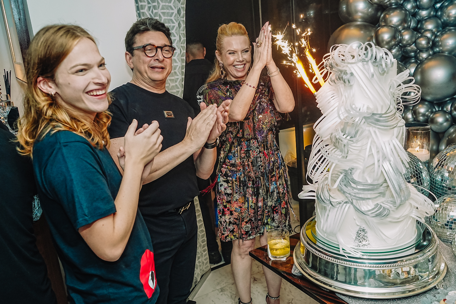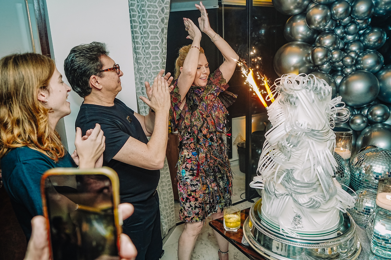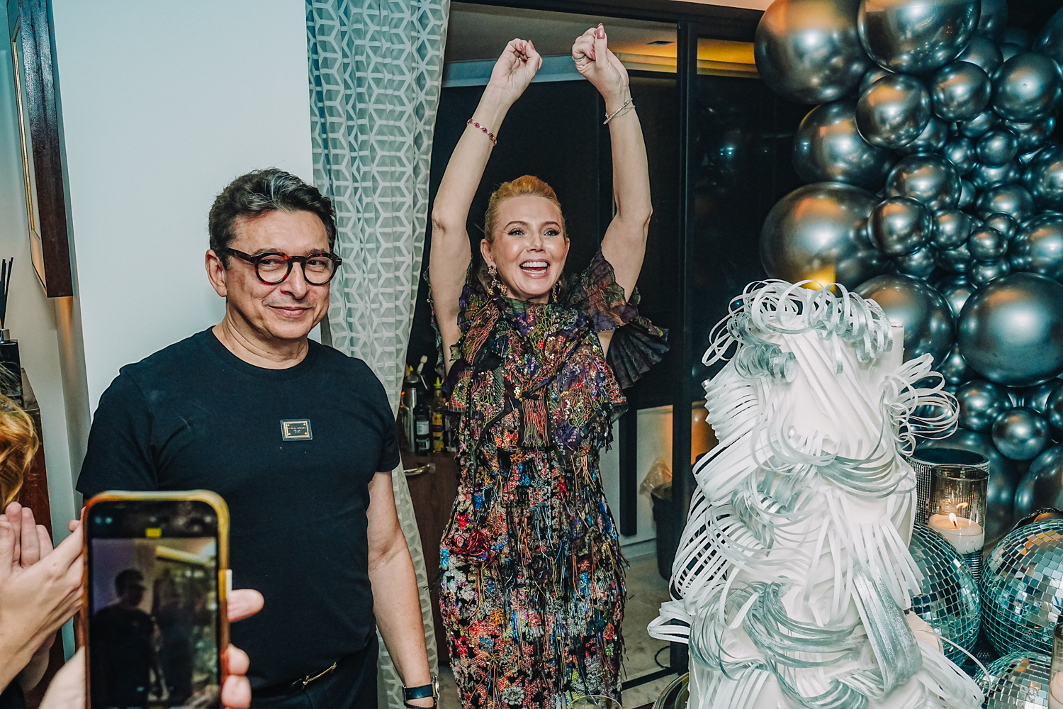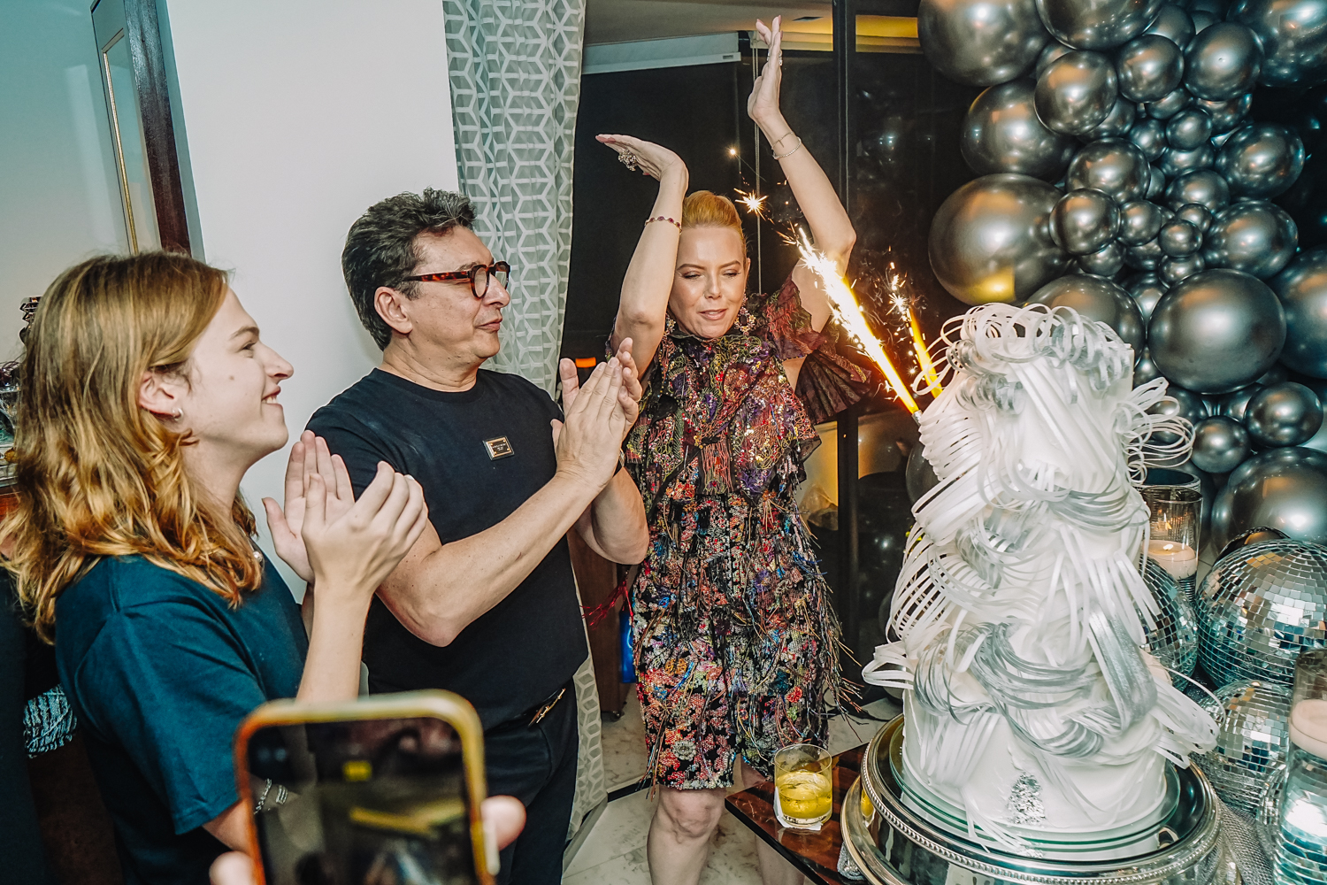Exalando beleza e elegância com um lindo vestido criado por Lino Villaventura, Branca Mourão abriu as portas de seu alinhado endereço e celebrou a chegada da nova idade em grande estilo na noite de sexta-feira (19). A sessão parabéns contou com uma linda e moderna decoração repleta de balões e globos espelhados criada pela própria aniversariante, refletindo todo o seu bom gosto. A produção da bem-cuidada festa ficou sob a batuta do Grupo Celebre. Por lá, a anfitriã curtiu o happening ao lado do marido Racine Mourão, dos filhos Anik, Thiago e Liz, e de seus queridos convidados, que, entre um drink e outro, dançavam ao som classudo do sax de Jorge Doudement e das batidas eletrizantes dos DJs Itaquê e Dani di Deus. Além disso, os cantores Fernando Amorim e Vivian Fernandes deram o tom extra de animação à party com seus repertórios envolventes. No script, bolo da Cacau2you, doces da Docemel, buffet por Lia Freire, do Barbra’s, bem-vividos por Célia Bezerra, pâtisserie e macarrons da Antoinette Boutique de Doces, bolo de rolo by Prisce e cocktail da 1ne, 2wo, drink. Aos flashes!