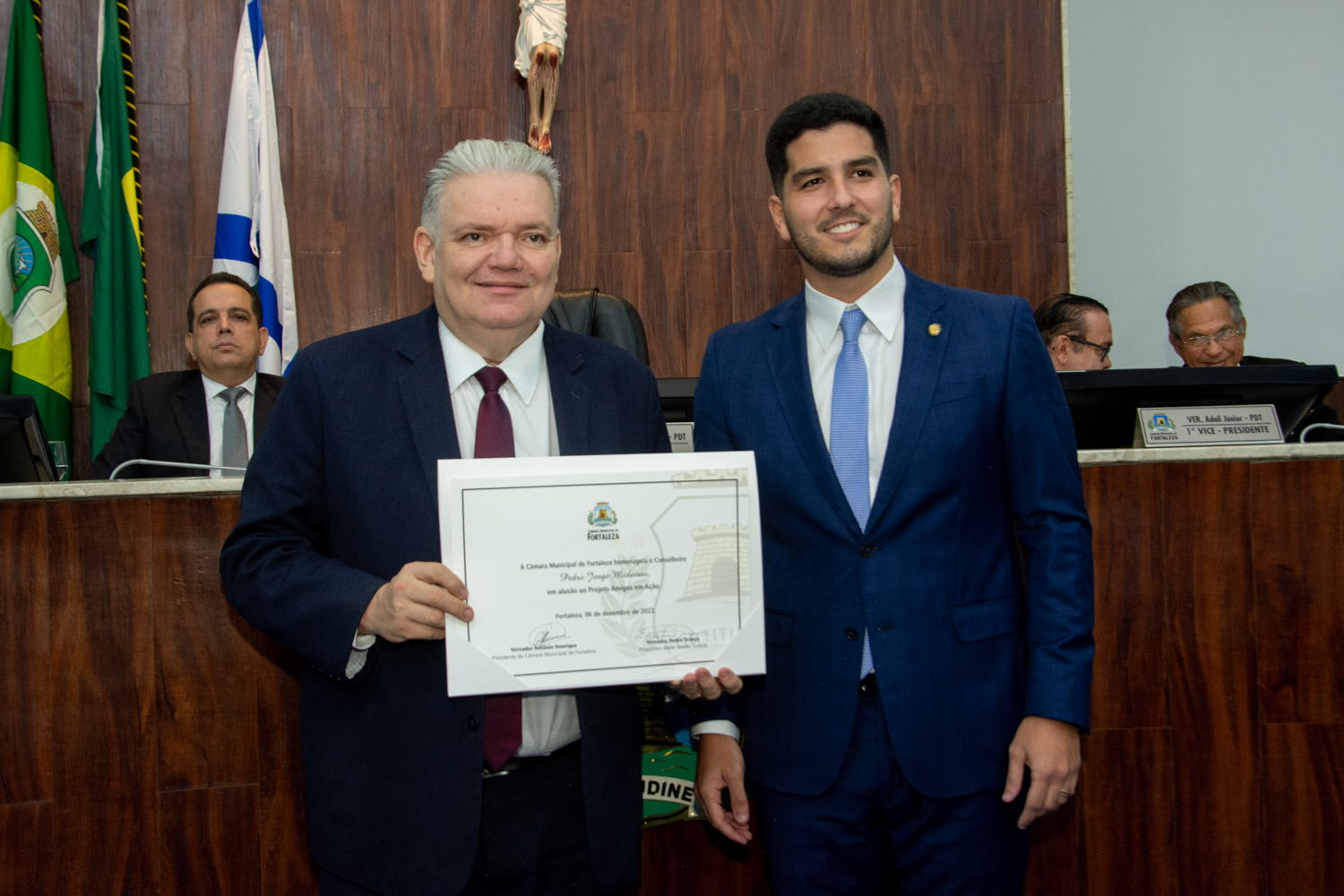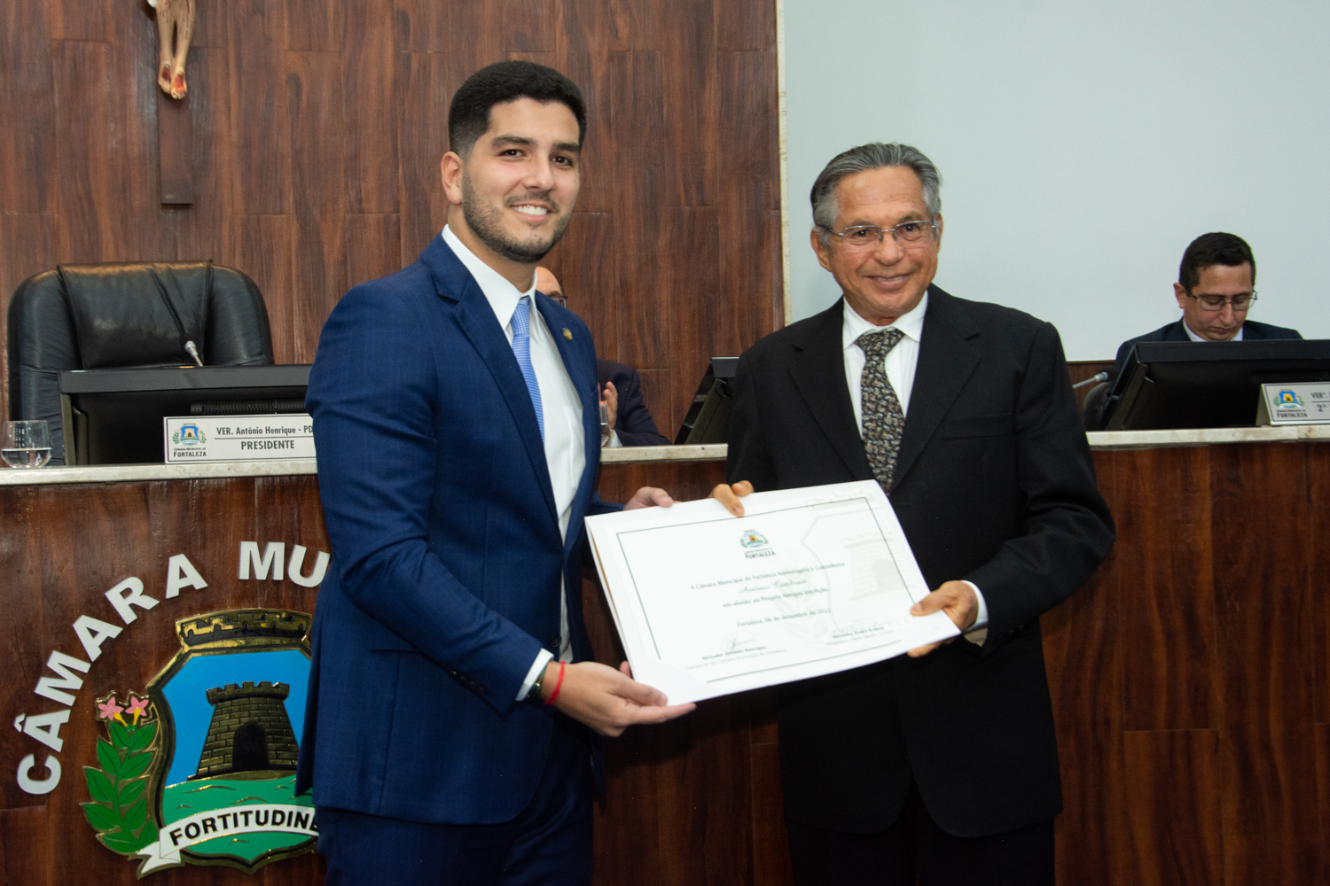 A Câmara Municipal de Fortaleza realizou na noite de terça-feira (6), uma solenidade de homenagem à Campanha Amigos em Ação, iniciativa desenvolvida pela Alessandro Belchior Imóveis, em nome dos 30 anos da ação que beneficia diversas entidades filantrópicas cearenses. Ao longo dos anos, mais de 100 casas já foram beneficiadas pelo projeto. O evento foi conduzido pelo presidente da Câmara e vereador Antônio Henrique, atendendo ao requerimento do também vereador Pedro França. Durante a ocasião, Germano Belchior, presidente da Campanha Amigos em Ação e diretor superintendente da Alessandro Belchior Imóveis, esteve presente juntamente com os conselheiros da campanha e convidados. Confira os clicks!