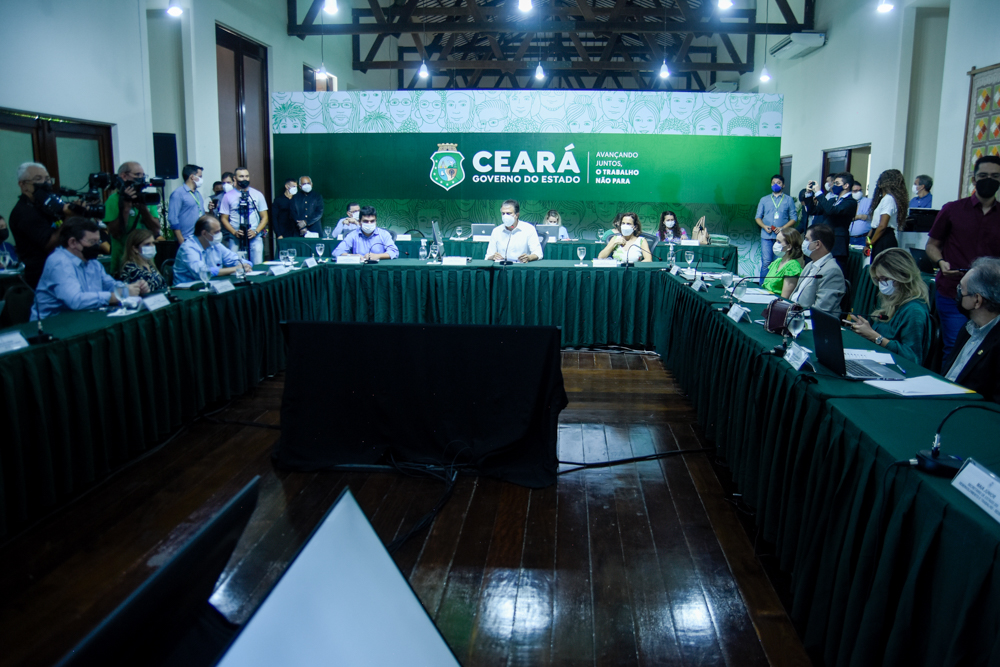 Governador do Estado, Camilo Santana se reuniu com secretários de Estado e presidentes das instituições vinculadas para debater as ações e projetos do Governo do Ceará, além do planejamento estratégico para 2022. Dentre as prioridades para o ano que vem estão a construção do Hospital Universitário, que será o maior equipamento da Capital, com 650 leitos, sendo 184 de UTI, e o Centro Integrado de Segurança Pública (CISP), que será o maior do País. O encontro aconteceu no Pavilhão de Eventos da Residência Oficial de Camilo, após uma coletiva de imprensa no começo da manhã. Aos clicks!