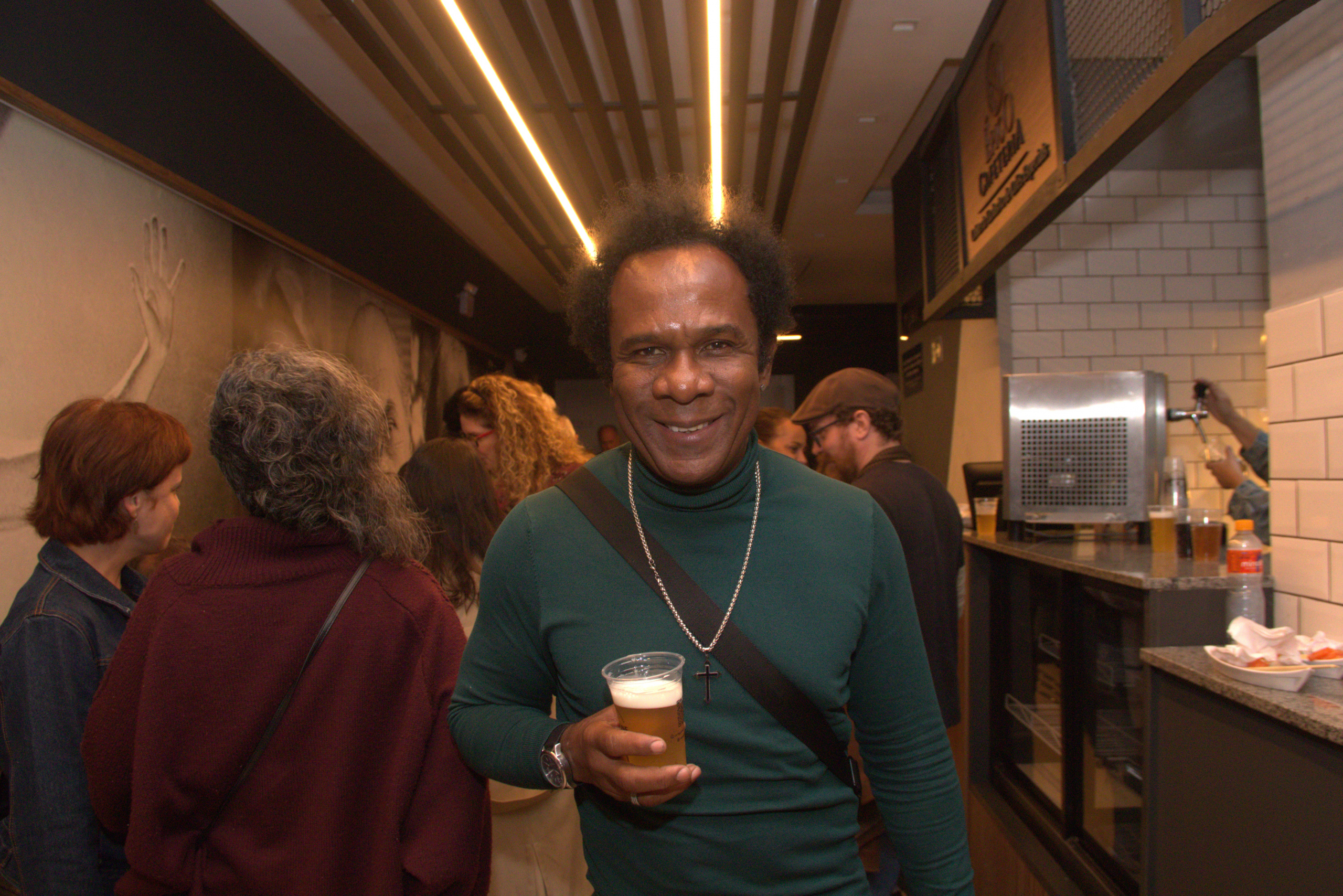 Depois da sessão, os convidados se encontraram no foyer, onde foi servido um coquetel com gastronomia japonesa do restaurante Toruk, pães artesanais da Pão & Companhia e cerveja artesanal da Backbone.