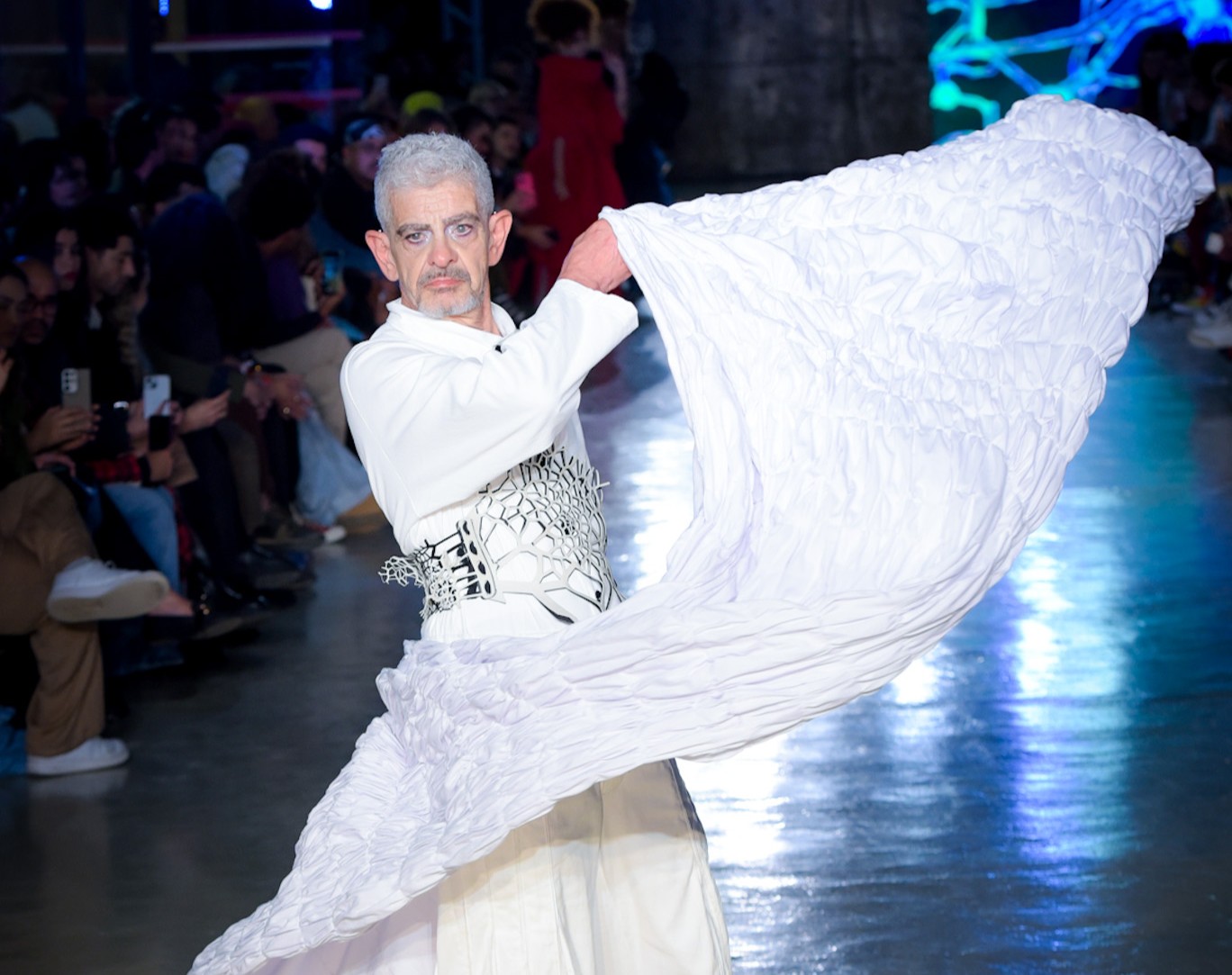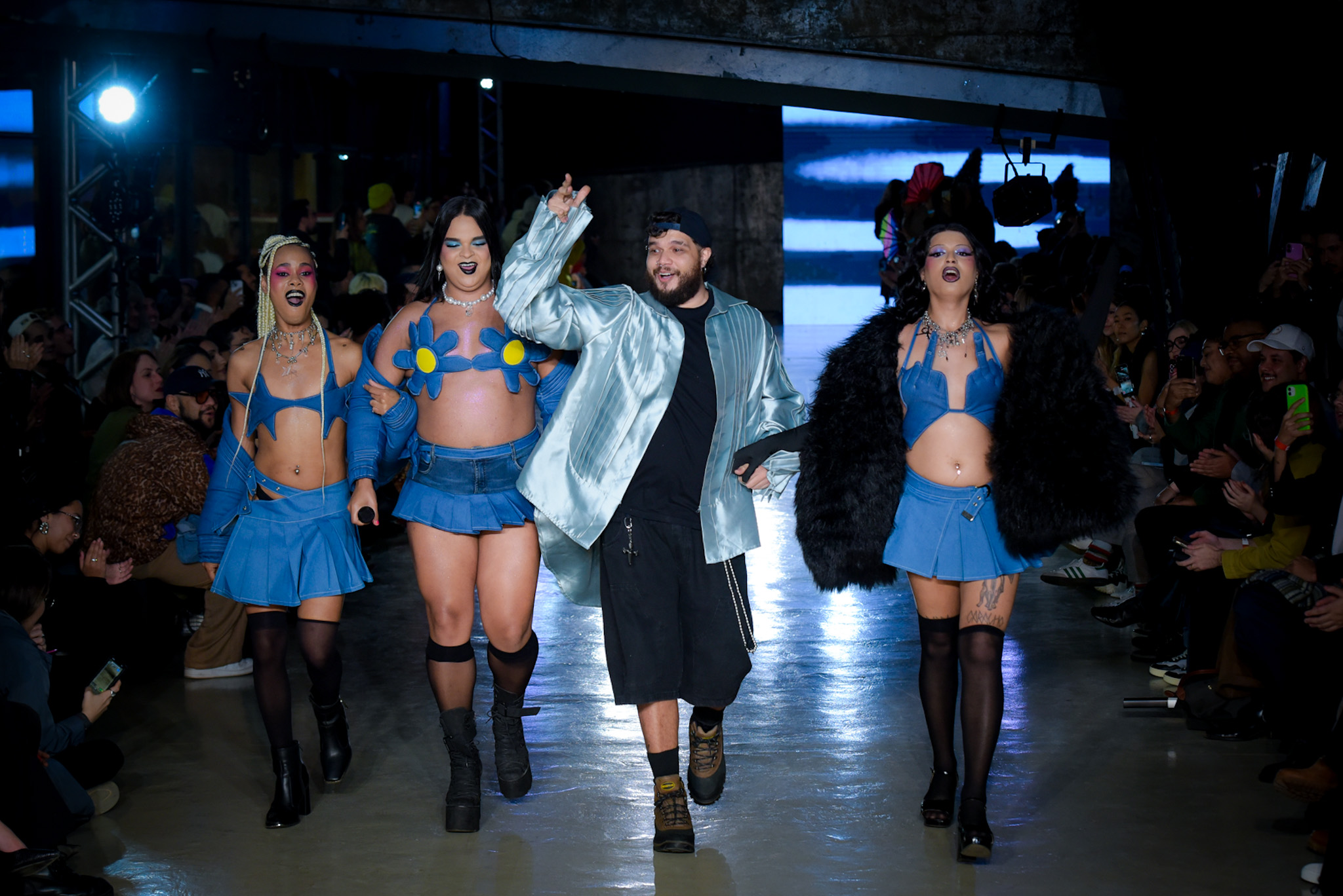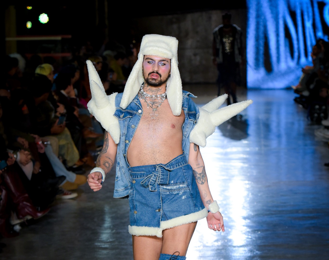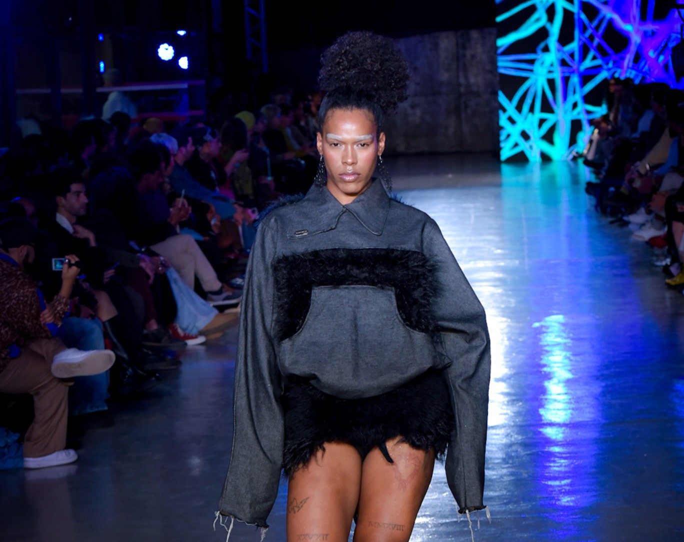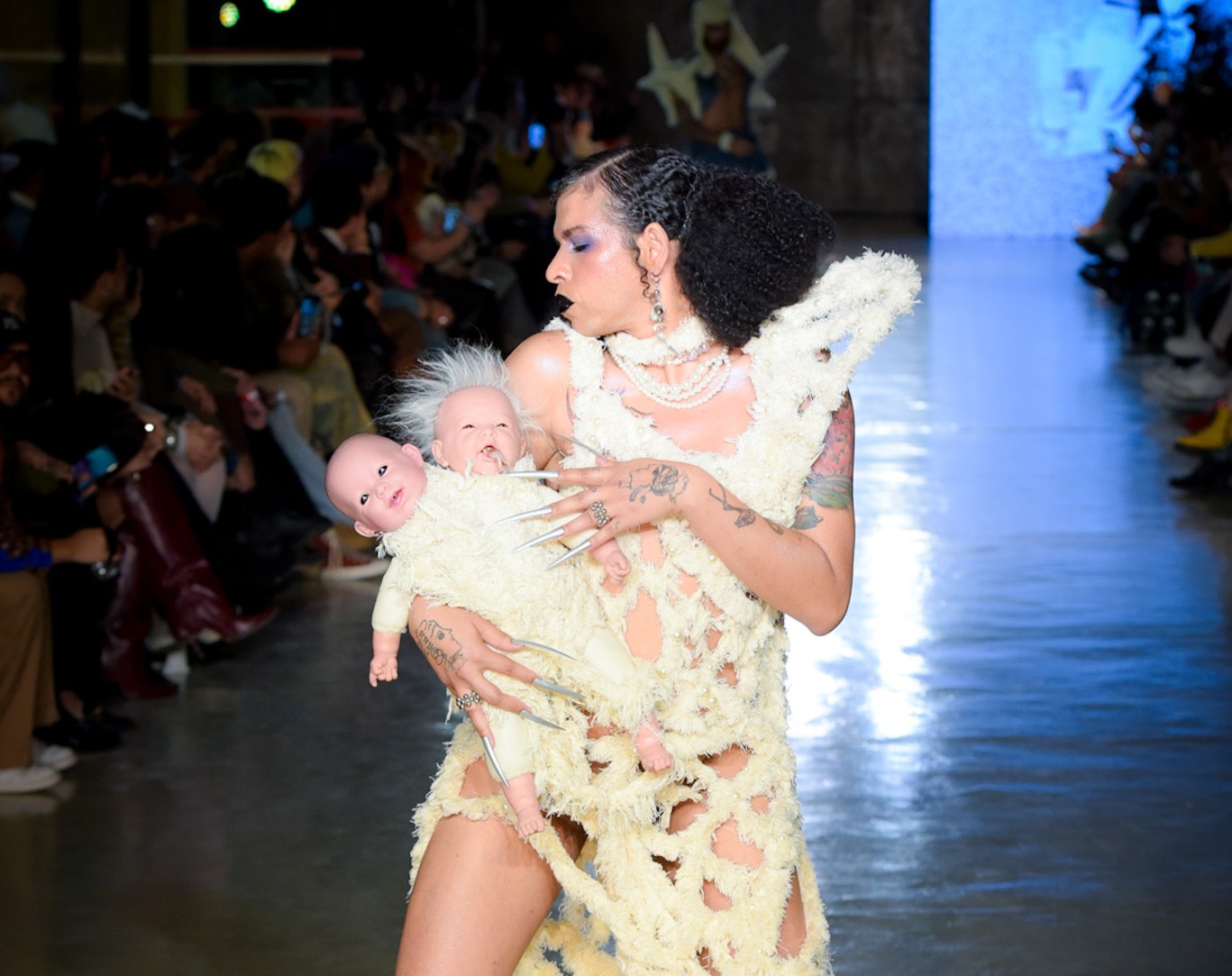 Com transparências, peles falsas e corpos à mostra, SUKEBANwear e Dellum questionaram padrões. Maxi Weber desfilou pela Plataforma Açu, que levou esculturas corporais à passarela. Já o Estúdio Traça reinventou o jeans com modelagens inusitadas e desconstruções surpreendentes. Um bebê reborn de duas cabeças também marcou a noite que misturou moda, arte e identidade.