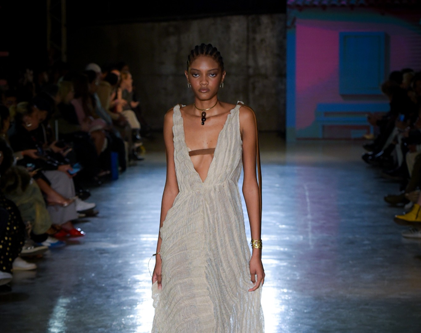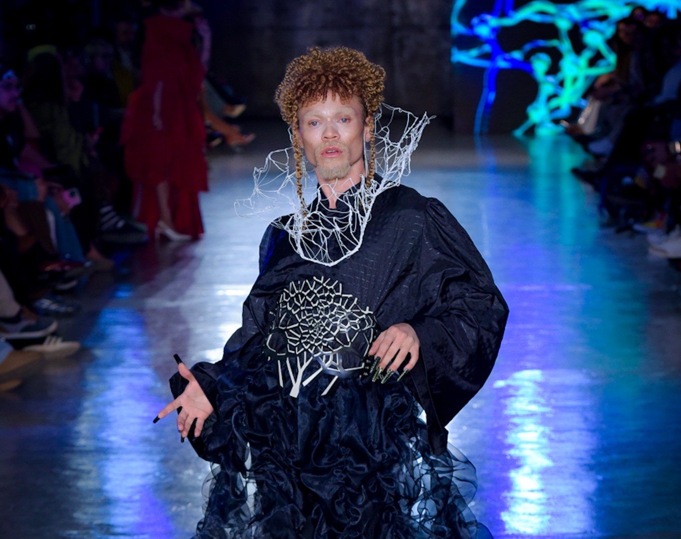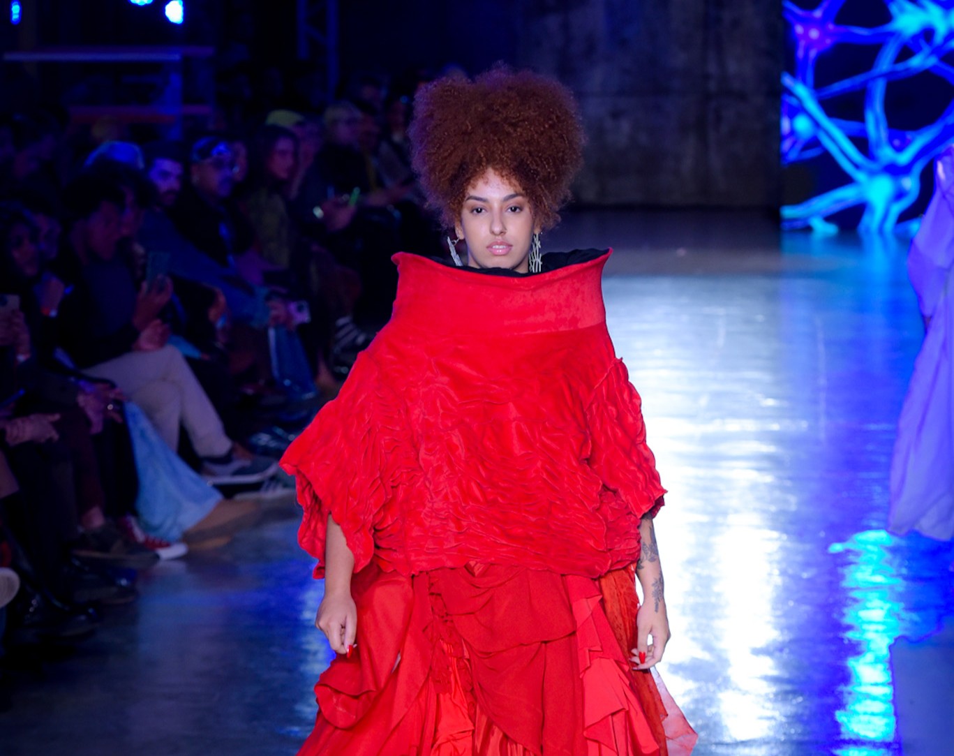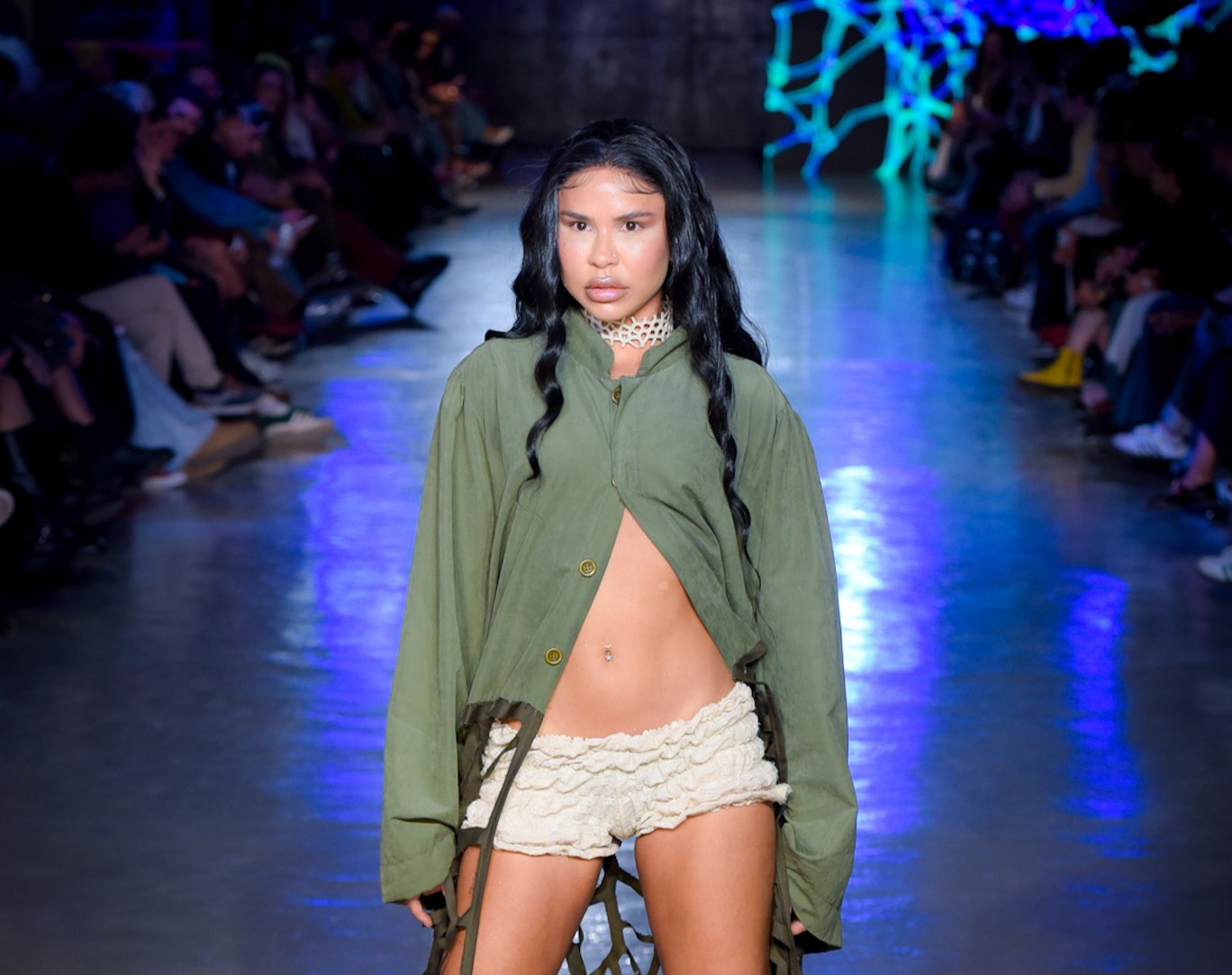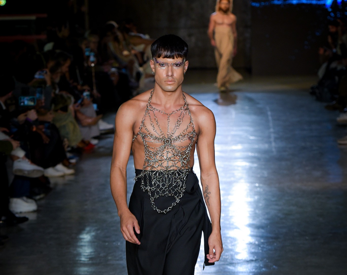 Com transparências, peles falsas e corpos à mostra, SUKEBANwear e Dellum questionaram padrões. Maxi Weber desfilou pela Plataforma Açu, que levou esculturas corporais à passarela. Já o Estúdio Traça reinventou o jeans com modelagens inusitadas e desconstruções surpreendentes. Um bebê reborn de duas cabeças também marcou a noite que misturou moda, arte e identidade.