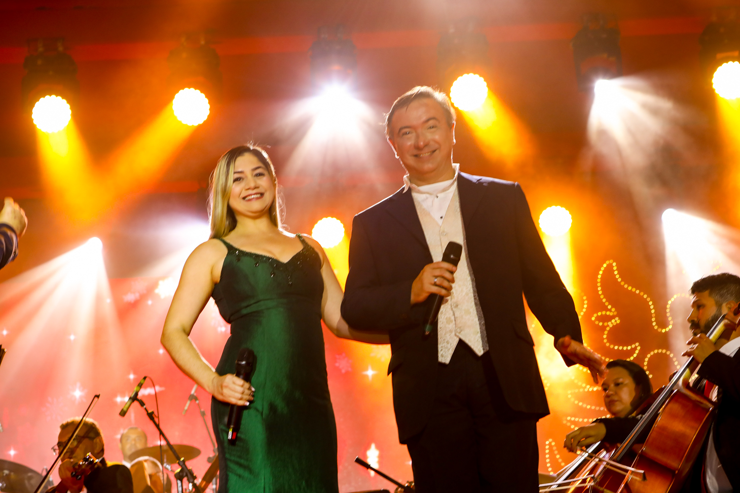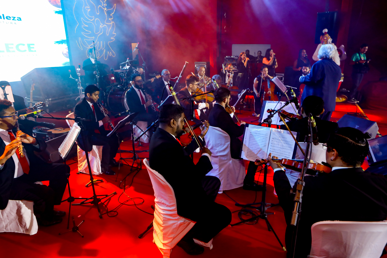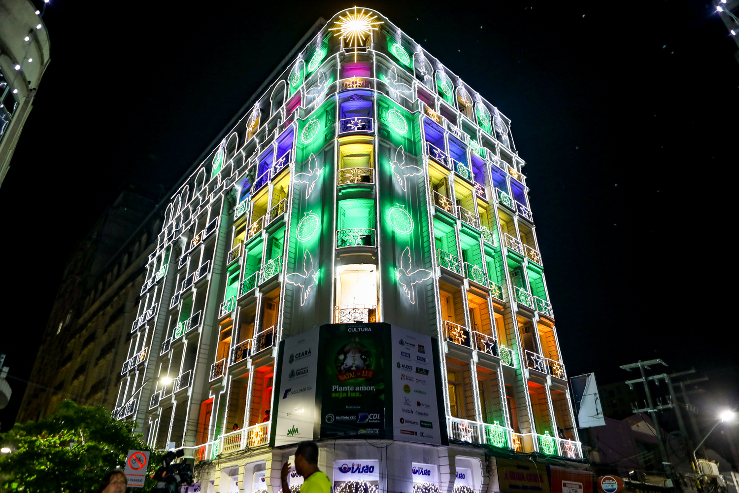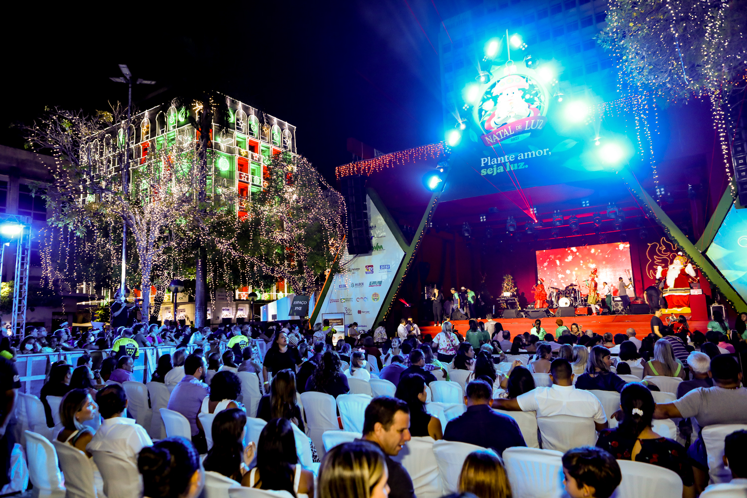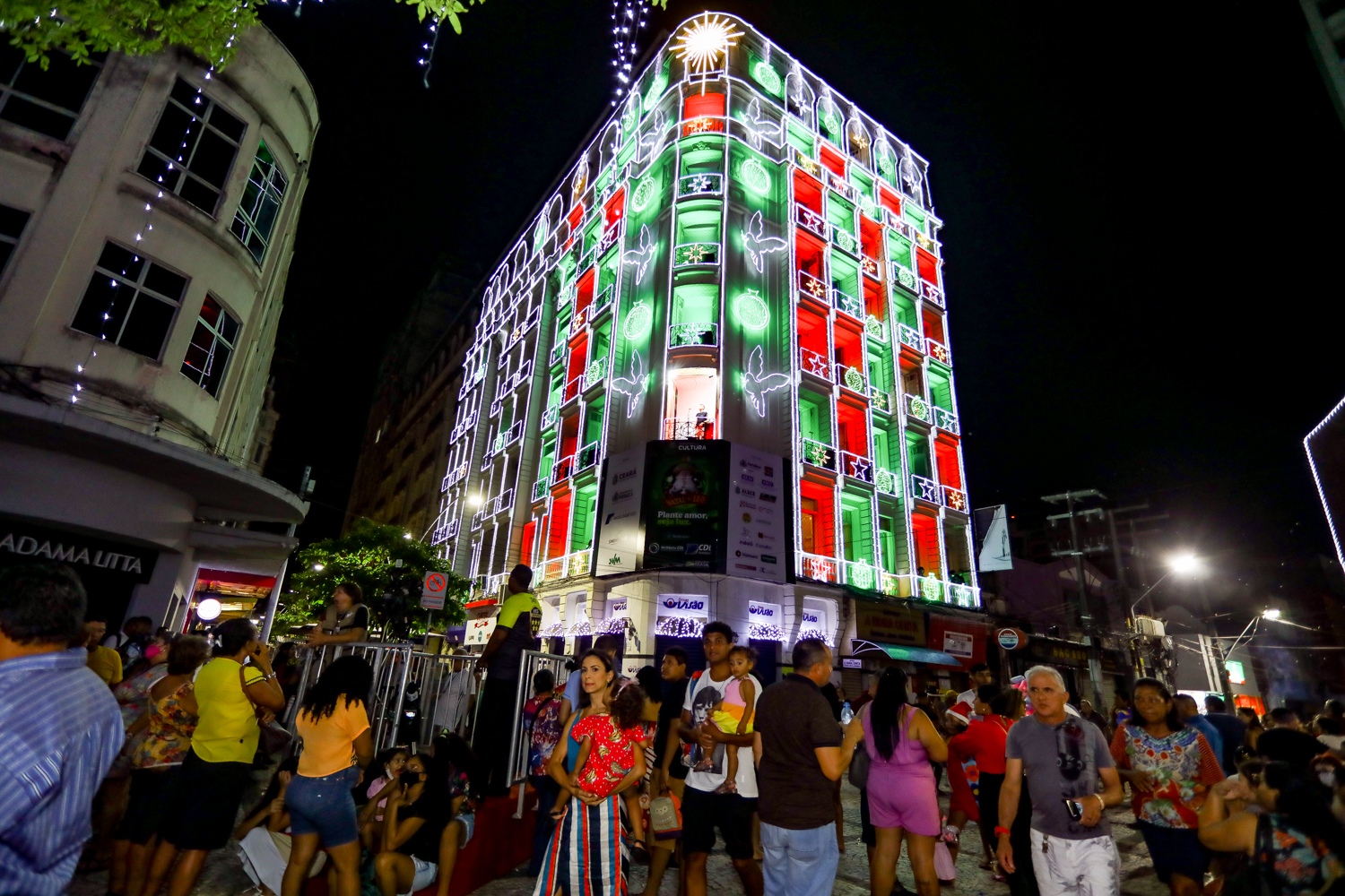O presidente da CDL de Fortaleza, Assis Cavalcante, comandou na noite de sexta-feira (18), a abertura oficial da 26ª edição do Ceará Natal de Luz, que ocorreu na Praça do Ferreira. O evento iniciou com uma bela apresentação musical encenada pelo grupo teatral Blitz e seguiu com os shows dos artistas Fafá de Belém, Waldonys, Marcos Lessa, acompanhado da Orquestra Villa Lobos, regida por Poty Fontenelle; Banda do Colégio Militar do Corpo de Bombeiros; e as crianças do tradicional Coral da Luz. A ocasião também contou com a chegada do Papai Noel, que entrou em cena com efeitos especiais e encantou o público. Além disso, a noite natalina foi marcada pelas ilustres presenças da Governadora do Ceará, Izolda Cela, do prefeito de Fortaleza, José Sarto, e do empresário Pio Rodrigues Neto, que foi homenageado durante o evento por ser o idealizador e coordenador do Ceará Natal de Luz durante 17 anos. Confira os clicks!