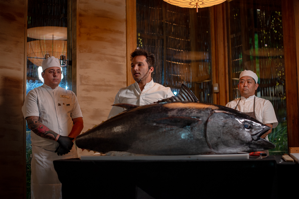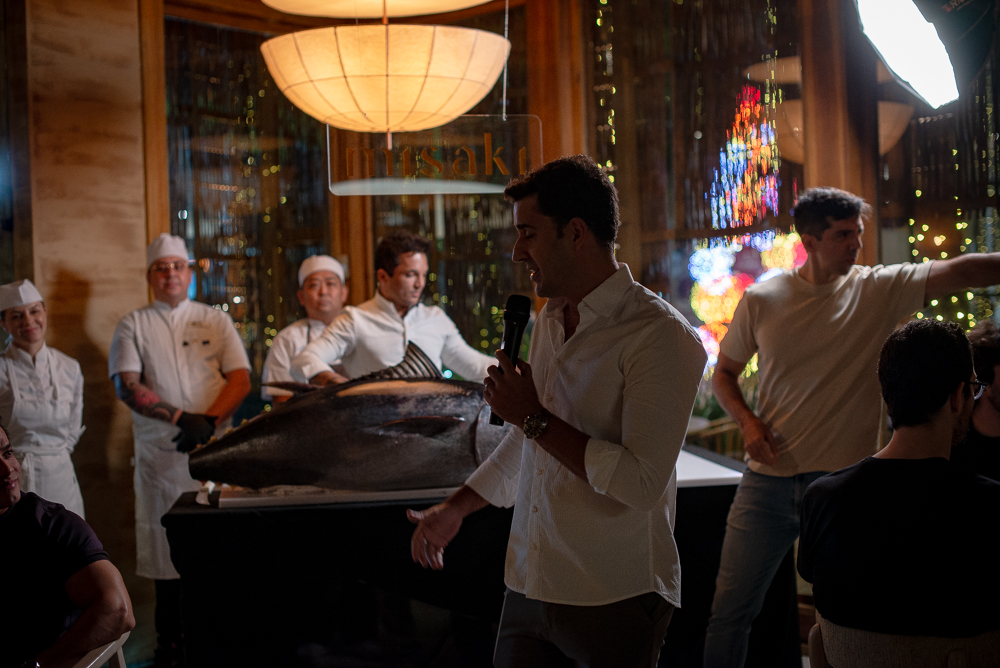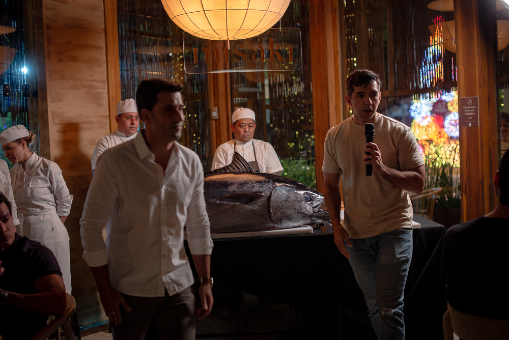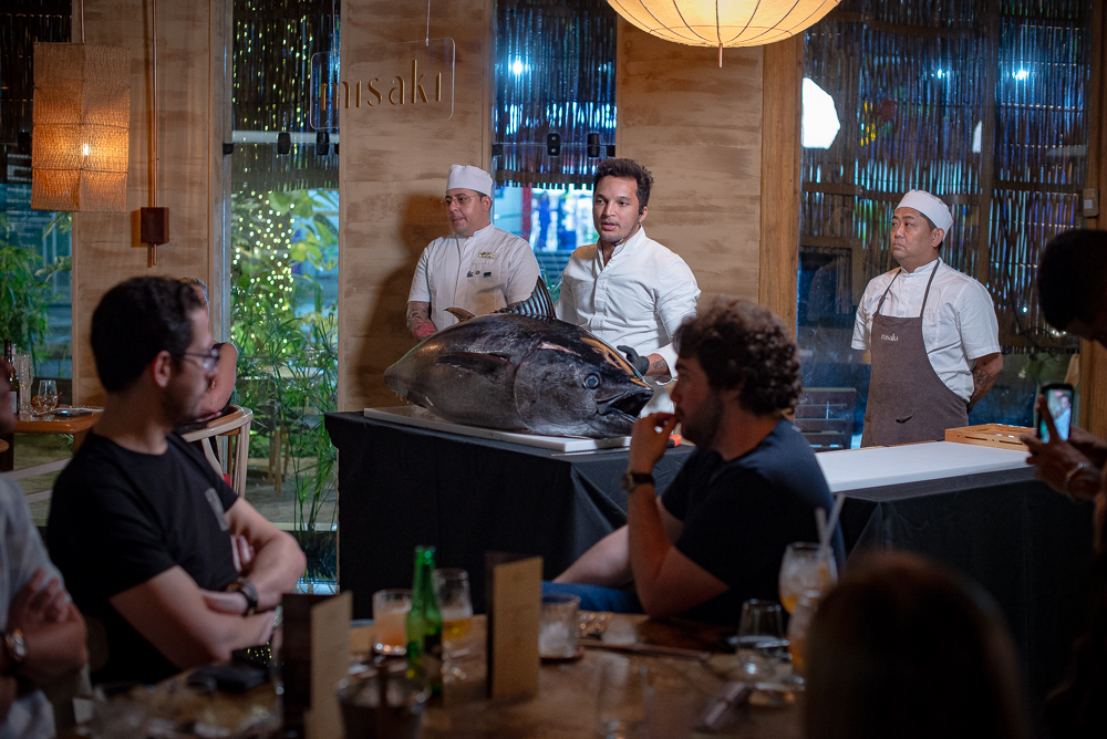 O restaurante Misaki reuniu convidados, na noite de quarta-feira (26), para celebrar seus dois anos de trajetória em Fortaleza com uma experiência que despertou curiosidade desde o primeiro anúncio: a Cerimônia Kaitai, ritual japonês dedicado ao atum bluefin. O clima tomou forma assim que o peixe de 70 kg, trazido do México, surgiu como protagonista da noite, abrindo caminho para uma imersão rara em cortes, gestos e tradições que fazem parte da alta gastronomia japonesa. À frente da cerimônia, o chef David Fonseca conduziu a comemoração pelo refinamento técnico do shokunin, e a chef Amanda Grezzana assumiu o desfecho do menu em cinco tempos com sua assinatura precisa e delicada.