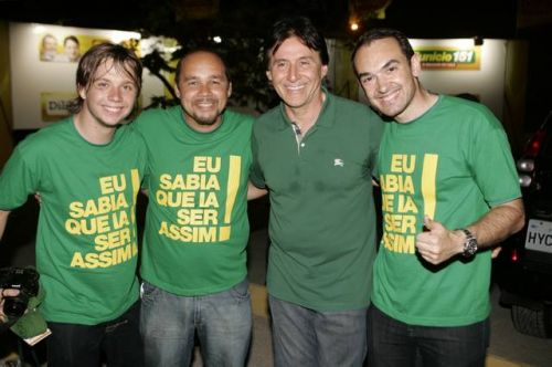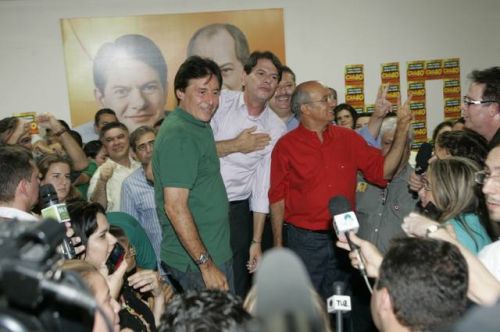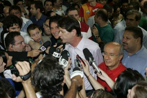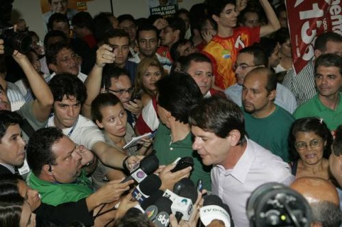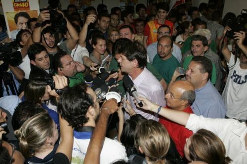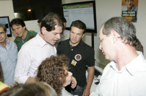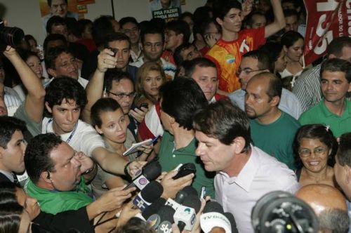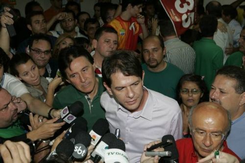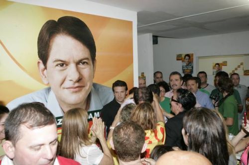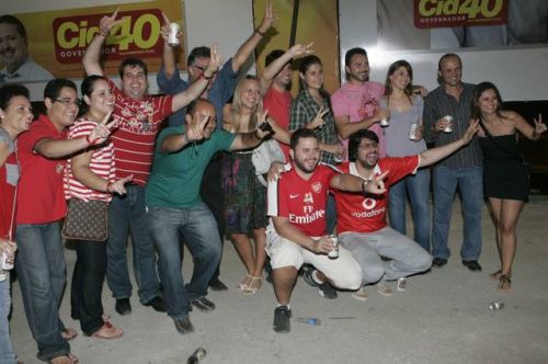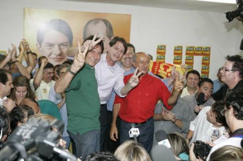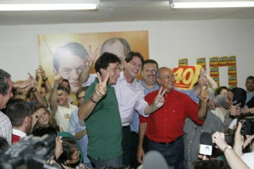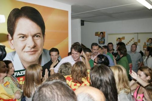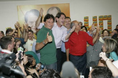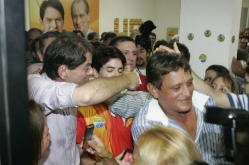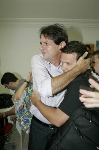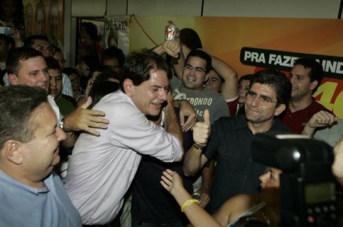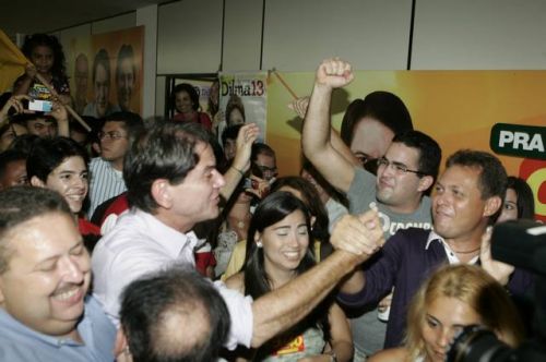 Uma rajada de fogos de artifício anunciava, neste domingo, 3, a vitória de Cid Gomes. Reeleito com 62% dos votos, o governador chegou ao comitê da campanha acompanhado dos senadores eleitos Eunício Oliveira e José Pimentel. Lá, apertou mãos, recebeu abraços, posou para fotos, deu entrevistas, subiu ao palco e agradeceu a todos pela retumbante vitória. Na sequência, Banda Soul Pop e Mr. Babão comandaram a animação até altas horas.