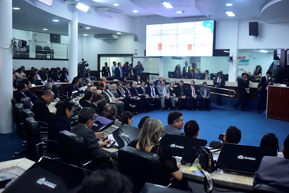Recebendo a presença ilustre do Prefeito de Fortaleza Roberto Cláudio, a Câmara Municipal realizou uma Sessão Solene para marcar a abertura do 1º Período Legislativo de 2020 da 18ª Legislatura. A solenidade teve início na praça Barros Pinho com o hasteamento do Pavilhão Nacional e terminou no Plenário da CMFor. Comandada pelo presidente do Legislativo Municipal, o vereador Antônio Henrique, a cerimônia contou ainda com a presença da primeira-dama Carol Bezerra, do vice-prefeito Moroni Torgan, do assessor especial da Casa Civil do Governo, Coronel Francisco Ponte, além de secretários, autoridades e demais convidados. Na ocasião, Antônio Henrique destacou o trabalho da Câmara, onde em 2019 aprovou leis importantes para o município, dentre elas, o Código da Cidade. Em seu discurso, Roberto Cláudio apresentou um balanço das ações de seu mandato nos últimos sete anos e os projetos para a cidade no decorrer do ano de 2020. Confira nos flashes a seguir quem pintou por lá!