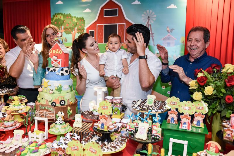 Transbordando alegria e celebrando o primeiro ano de vida do pequeno João, Raissa Vasconcelos e Odmar Feitosa Márcio armaram uma festinha intimista na Vignoli reunindo amigos queridos e familiares. A decoração da fazendinha montada no local foi composta por um cenário divertido e supercolorido, com docinhos, bolos e lembrancinhas no tema. A sessão parabéns contou com a alegria contagiante do aniversariante e o amor dos convidados pelo primeiro herdeiro de Raissa e Odmar. Confira na galeria a seguir os melhores clicks!