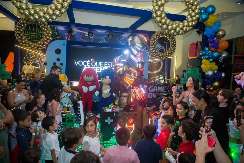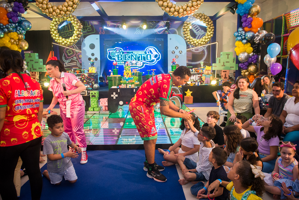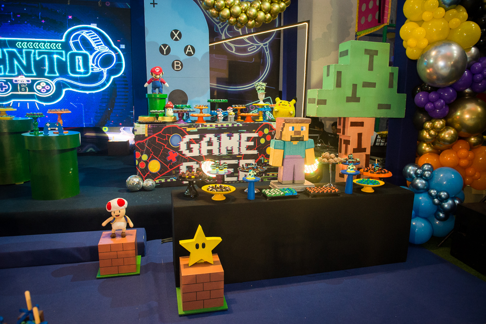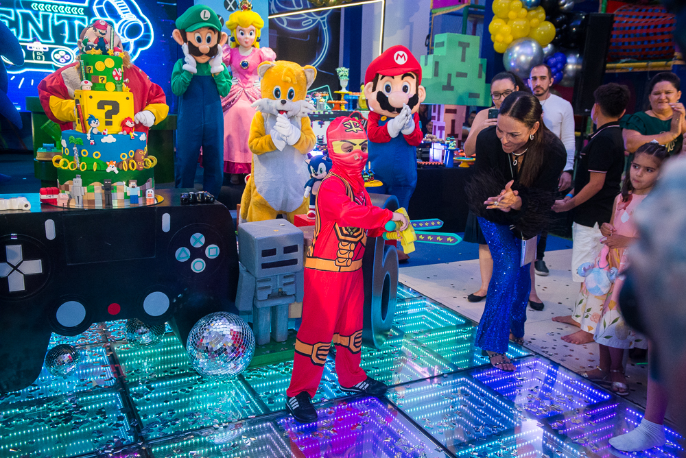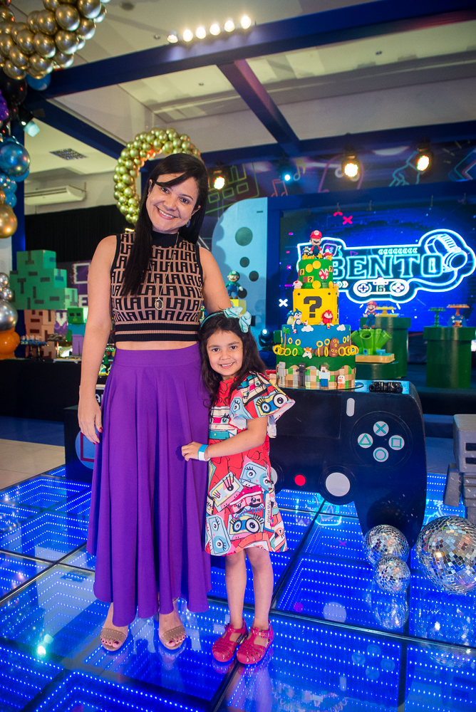 As mamães Gil Santos e Denise Bezerra reuniram altinhos e baixinhos em uma superfesta temática, no DudaBaluza Buffet , para celebrar os 6 aninhos de Bento. Tendo como tema o mundo dos games, o lúdico espaço foi transformado em um cenário de sonhos com diversos personagens das animações do Mário, Sonic, Minecraft e Pokémon. No local, os pequenos se divertiram no touro mecânico, na cama elástica e se animaram com as apresentações realizadas pela Cia Mix da Alegria. No script: o cerimonial ficou sob a batuta de Nazaré Santiago; iluminação e estrutura da Luminart Eventos e a impecável decoração foi assinada por Mannu Dudabaluza. Confira nos clicks a seguir quem pintou por lá para abraçar o pequeno aniversariante!
