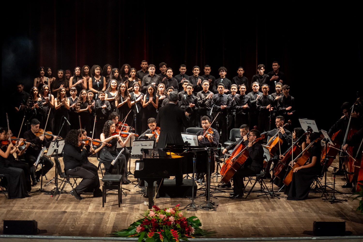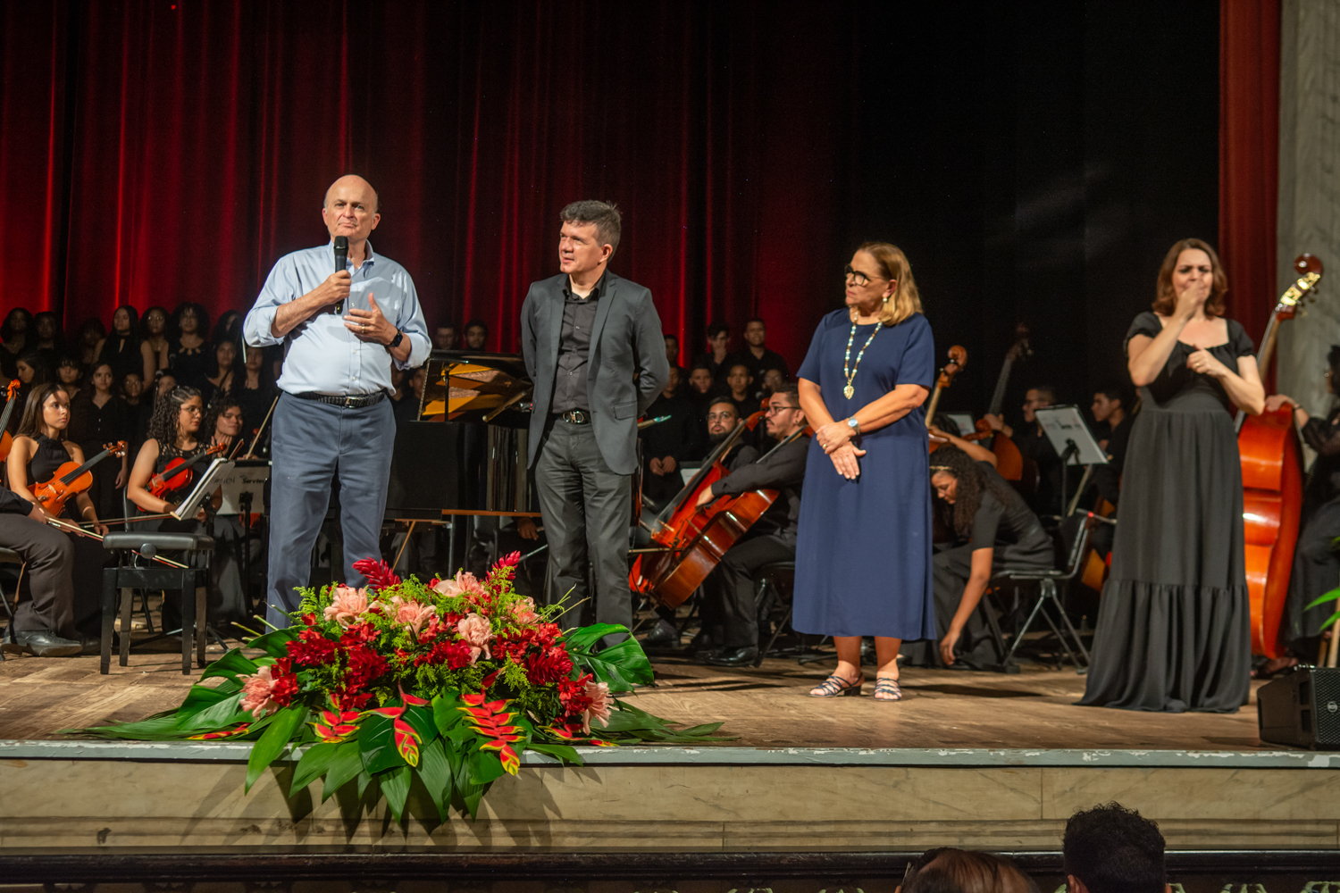 Sob a batuta do maestro Luís Maurício Carneiro, a orquestra Jacques Klein realizou um concerto em comemoração aos 10 anos do Instituto nesta terça-feira, 6, no palco do Theatro José de Alencar. Com participação do coral Vozes de Iracema o evento encantou o público com um repertório em que destacavam-se obras de diversos autores contemporâneos e clássicos, como Norman Leydn, Del Borgo e o brasileiro Heitor Villa-Lobos. Reconhecido como um dos grandes pianistas eruditos do Brasil, Jaques Klein nasceu em Aracati, no dia 10 de julho de 1930. Por meio do Programa de Música Jacques Klein (PMJK), o instituto oferece atividades musicais, que atualmente atende a mais de 400 alunos