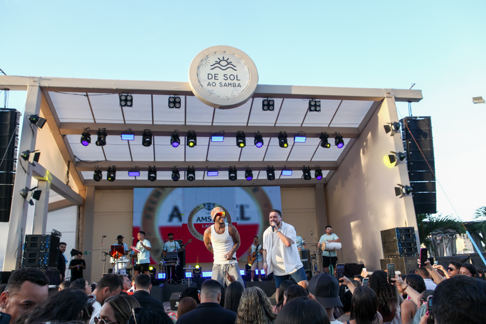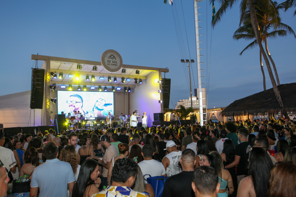 No Iate Clube de Fortaleza, o sábado (27) foi marcado pelo pagode e o samba do projeto De Sol ao Samba, com Dilsinho, Karenzinha e o Tudo Fica Blue, capitaneado por Davizão e Felipim. À beira-mar do Mucuripe, a tarde ganhou clima de verão e um público que acompanhou as apresentações com a leveza típica do fim de ano. No palco, Dilsinho revisitou sucessos que atravessam diferentes fases da carreira, Karenzinha apresentou canções que já integram sua identidade artística e o Tudo Fica Blue trouxe releituras que transitam entre o pagode atual e os clássicos do gênero, mantendo a energia em alto-astral do início ao fim.
