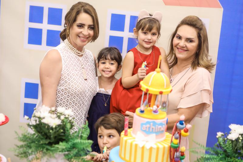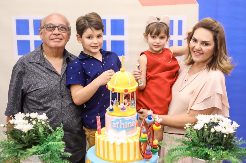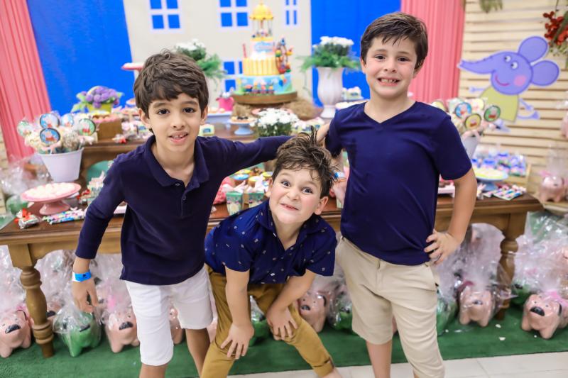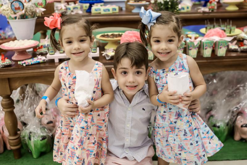 Diversão e muita guloseima fizeram a alegria de altinhos e baixinhos que aterrissaram no Pakaraká para comemorar os 4 anos de Athina Leal. A herdeira de Rebeca Leal e Bruno Bastos recebeu os amiguinhos no lúdico espaço do Pátio Dom Luis fantasiada de Peppa Pig, tema da festa. Teve muita brincadeira, teatro com a turma da família Pig e alegria no pula pula. No script, o lindo bolo levou a assinatura de Analú e doces da Docidée. Aos flashes!