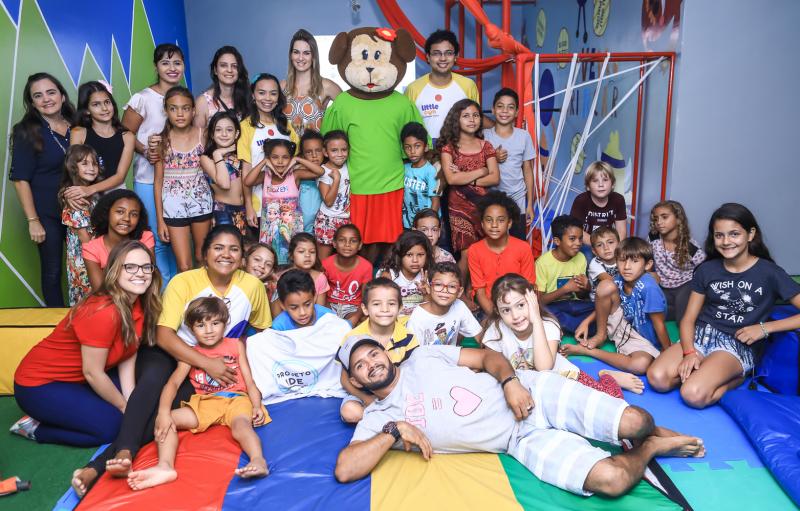 Germana Melo e Raquel Carneiro promoveram na Little Gym uma manhã de muita diversão, brincadeiras e encantamento para 40 crianças carentes do Projeto IDE, que tira da ociosidade jovens e crianças carentes da praia da Abreulândia. O meeting contou com a parceria da Bebetenkitê, Meu Brinquedo de Papel, Nabirra Acário Brigaderia, Cookie dos Sonhos, Balada In e Balacobaco Ateliê de Festas. Além das brincadeiras na academia infantil, os pequenos levaram para casa muitos mimos e guloseimas.