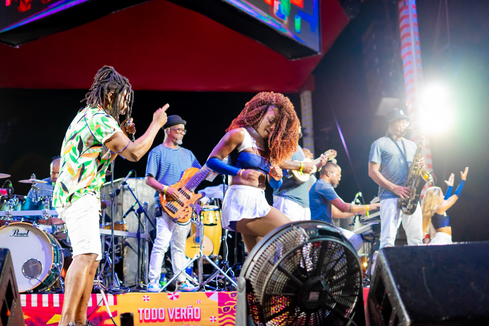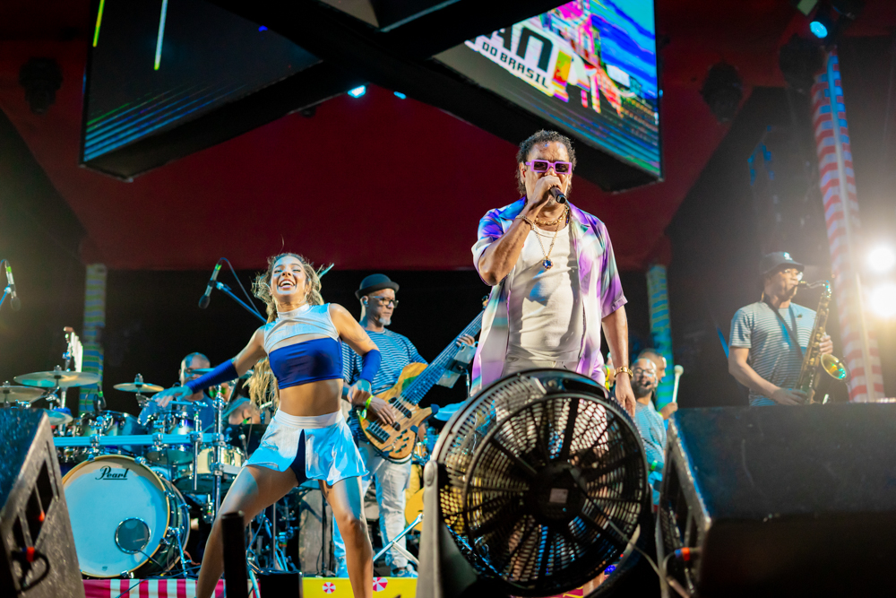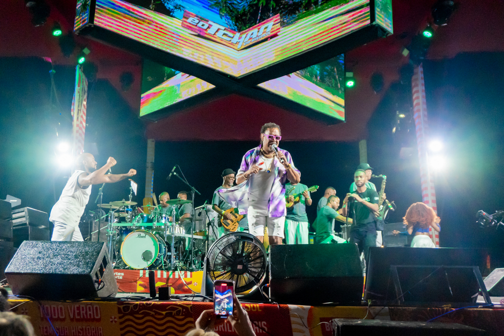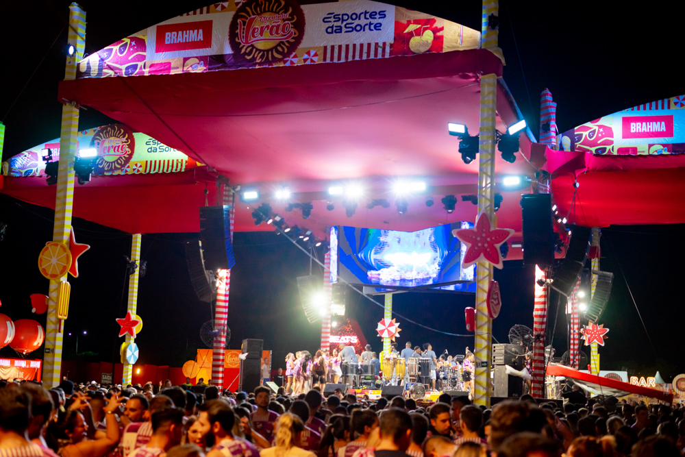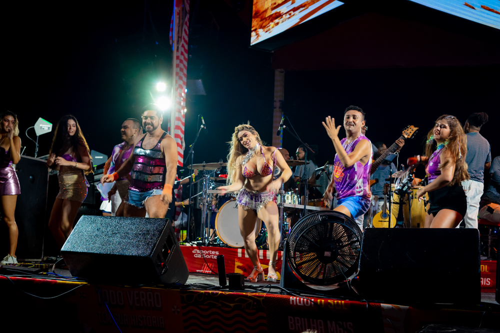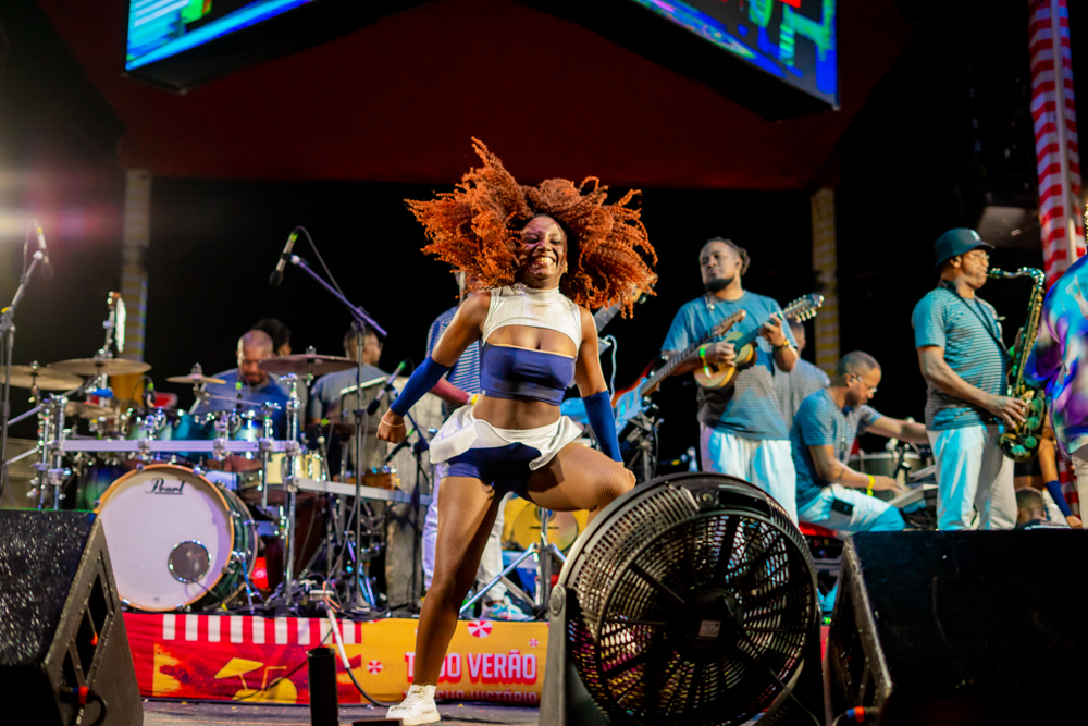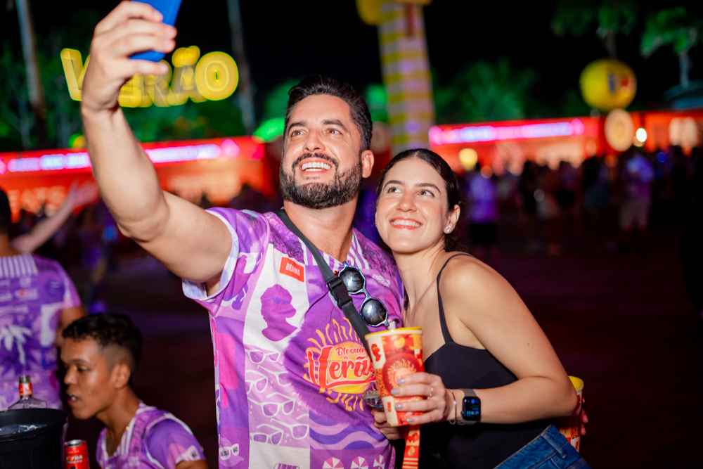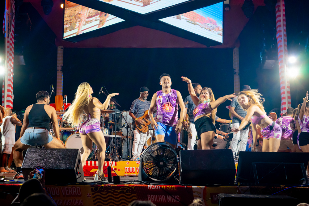 O Bloquinho de Verão seguiu em ritmo acelerado no sábado (1º), reunindo foliões no Colosso Fortaleza para mais uma noite de festa. O grupo É o Tchan foi o grande destaque da noite, levando ao palco hits como Dança do bumbum, Ralando o tchan e Segura o tchan, acompanhados das coreografias que marcaram época.