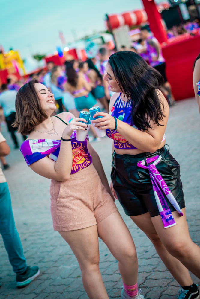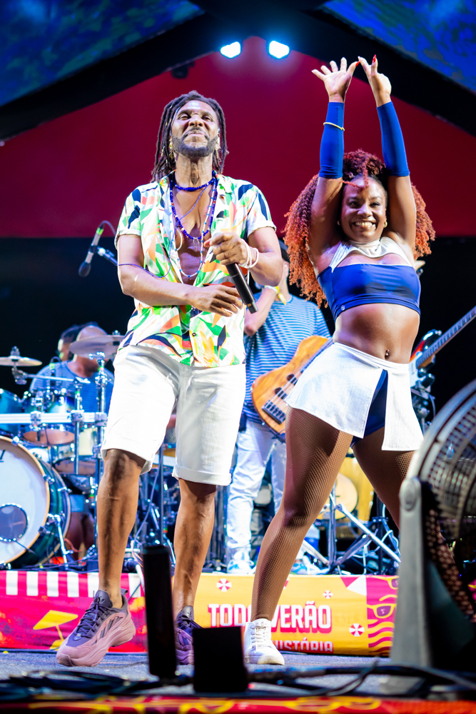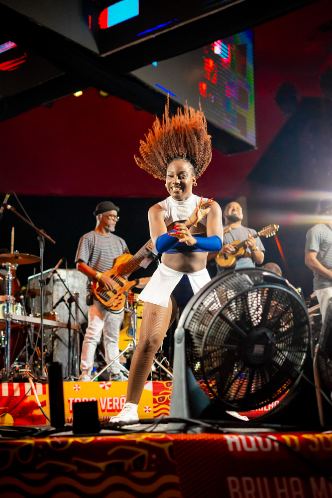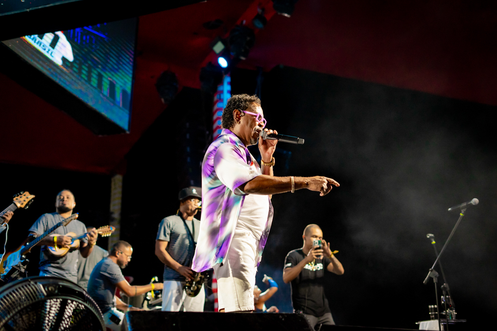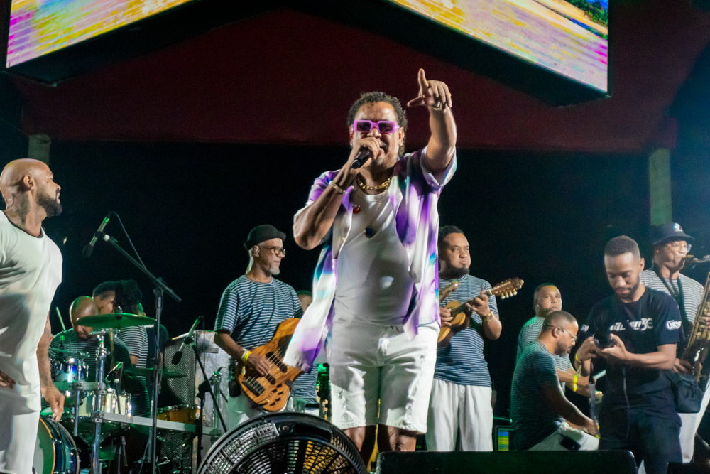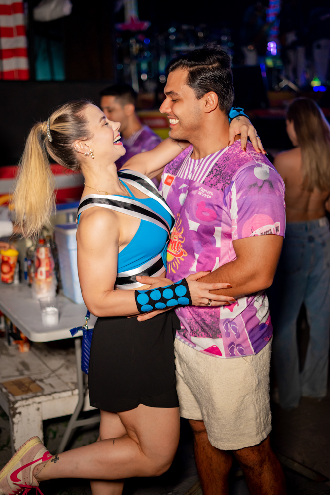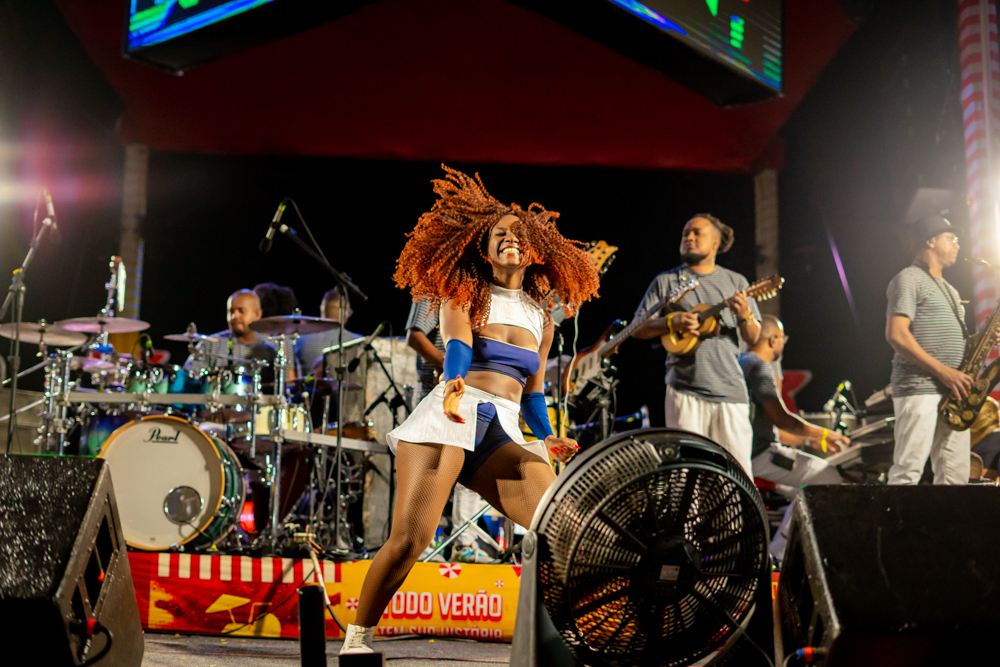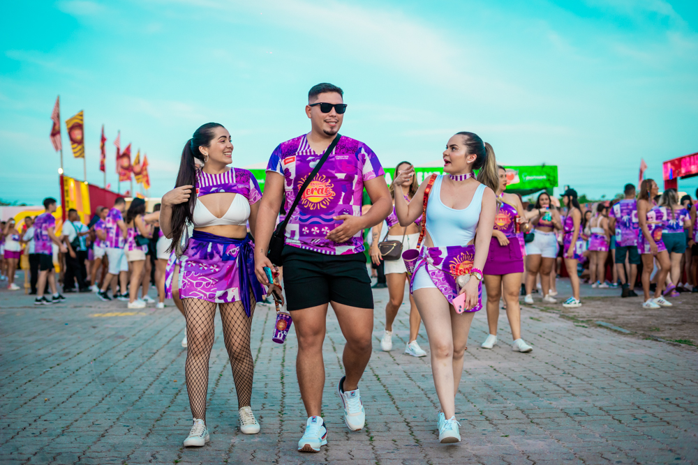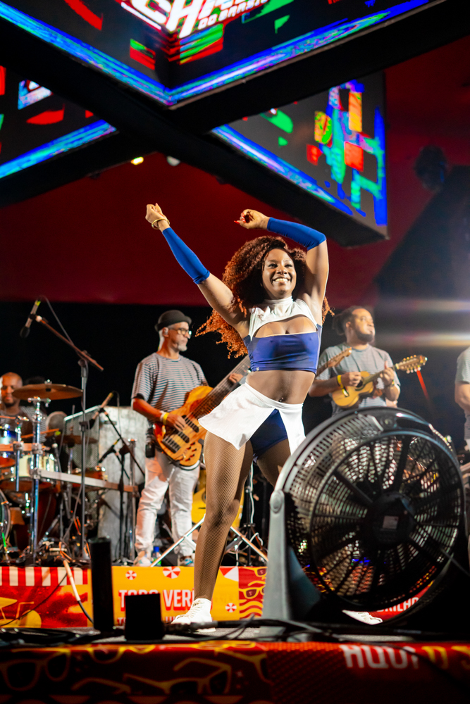 O Bloquinho de Verão seguiu em ritmo acelerado no sábado (1º), reunindo foliões no Colosso Fortaleza para mais uma noite de festa. O grupo É o Tchan foi o grande destaque da noite, levando ao palco hits como Dança do bumbum, Ralando o tchan e Segura o tchan, acompanhados das coreografias que marcaram época.