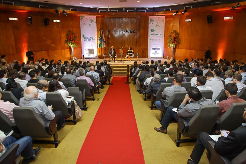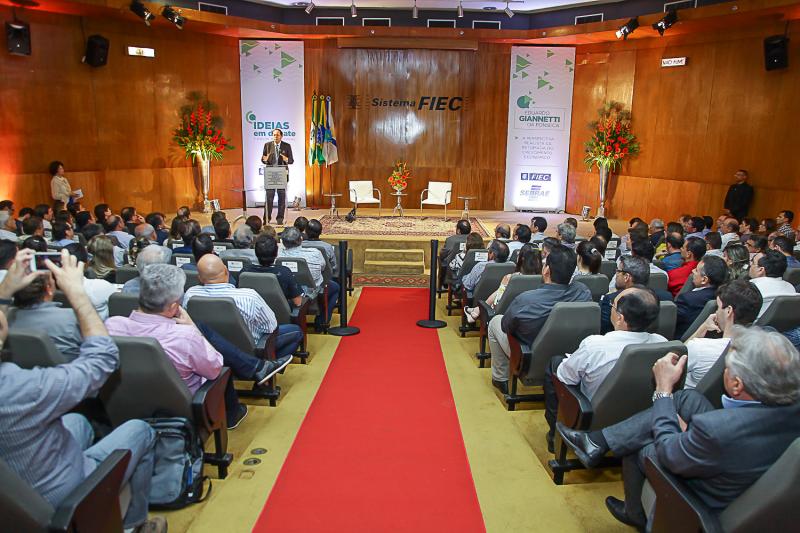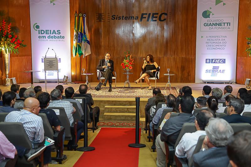 Presidente da Fiec, Beto Studart recebeu nomes de peso do mundo dos negócios, hoje,no Auditório Waldyr Diogo, na Casa da Indústria para mais uma rodada do fórum industrial Ideias em Debate. Na ocasião, o economista Eduardo Giannetti, com PhD em Economia pela Universidade de Cambridge, fez palestra sobre o tema ” A perspectiva realista da retomada do crescimento econômico”. Nesta terça, 21, BS toma a rota de Brasilia, onde levará o presidente da Confederação Nacional da Indústria- CNI, Robson Andrade e outros presidentes de Federação, para audiência com o presidente do Senado, senador Eunício Oliveira.