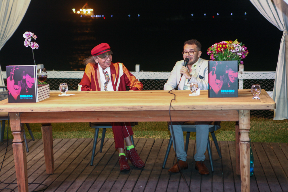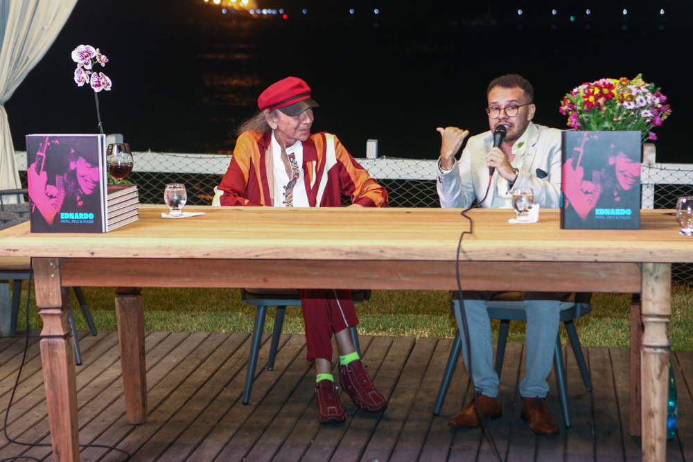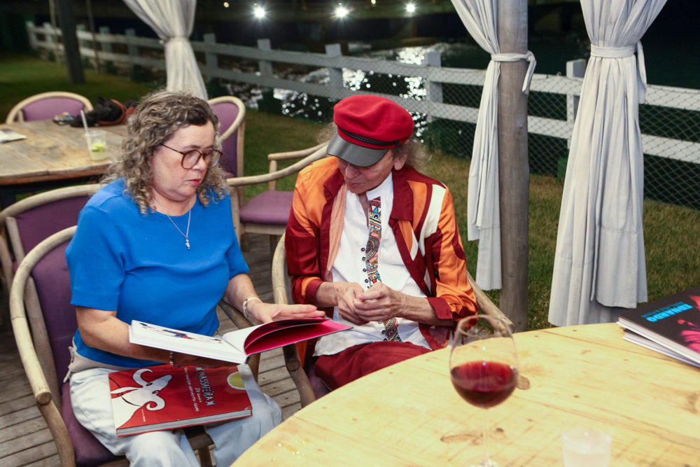 O cantor, instrumentista e compositor Ednardo marcou sua chegada aos 80 anos com o lançamento do livro “Ednardo – Papel, Pele & Pulso”, na quinta-feira (17), em encontro especial no Iate Clube de Fortaleza. A publicação propõe uma imersão sensível em sua trajetória multifacetada, reunindo crônicas, poemas, desenhos e imagens que percorrem a diversidade criativa de um dos artistas mais representativos da música brasileira. Com projeto gráfico assinado por Rafael Limaverde, a obra traz texto biográfico do jornalista Luã Diógenes, que conduziu um bate-papo com o aniversariante durante o evento. A coordenação-geral é de Julia Limaverde, responsável por orquestrar o projeto com o intuito de traduzir, em livro, a amplitude da produção de Ednardo — da música à imagem, da palavra ao gesto.