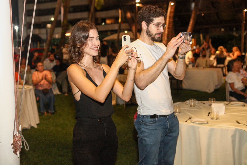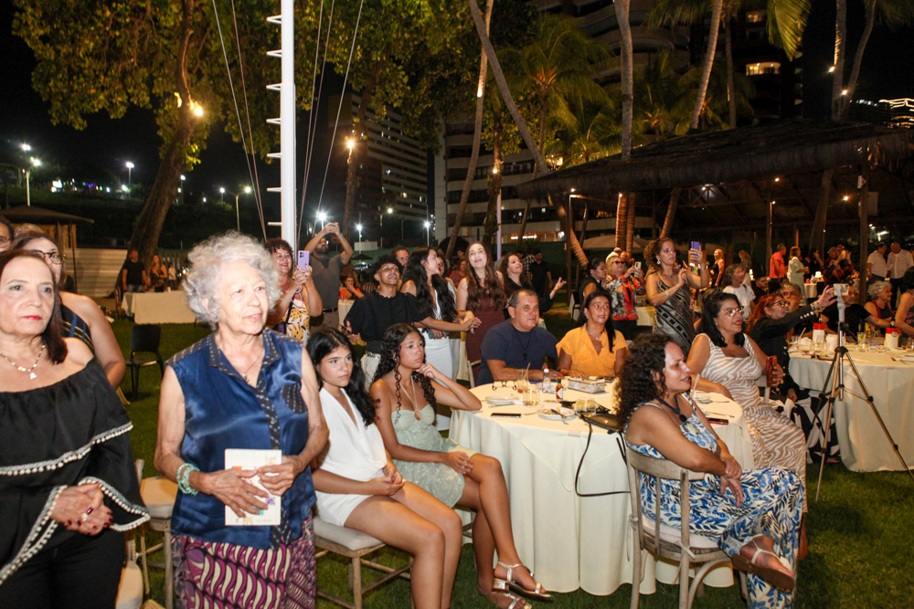 O cantor Ednardo recebeu convidados no Iate Clube de Fortaleza, na sexta-feira (17), para a primeira audição ao vivo de “Ednardo Hum Ano”, em formato de pocket show. Em clima intimista, o artista apresentou o novo repertório antes da circulação oficial, conduzindo uma escuta próxima, direta e carregada de significado. Com mais de cinco décadas de trajetória, Ednardo revisitou sua própria linguagem ao mesclar inéditas e a força de uma obra que atravessa gerações. Clássicos como “Pavão Mysteriozo” e “Terral” ecoam como base de um percurso que segue em movimento. O novo disco reafirma a assinatura de um dos nomes centrais do Pessoal do Ceará, movimento que projetou a música cearense no país. Em “Hum Ano”, Ednardo mantém viva a inquietação criativa que marca sua trajetória. Veja quem esteve lá!
