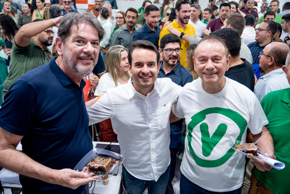 O deputado federal Eduardo Bismarck oficializou no sábado (25), em Fortaleza, sua filiação ao Partido Verde (PV), marcando a entrada na dinâmica da federação PT/PCdoB/PV e se insere no movimento de reorganização política no Ceará com foco nas eleições de 2026. O ato reuniu lideranças e aliados como o senador Cid Gomes (PSB), que ganhou bolo surpresa pelo aniversário em 27 de abril, e que destacou a construção para fortalecer os partidos da federação e ampliar a atuação do grupo no Estado. A agenda também evidenciou a base política do parlamentar, com a presença de familiares e apoiadores incluindo o deputado estadual Guilherme Bismarck, o secretário do Turismo, Gustavo Montenegro, e a prefeita do Aracati, Roberta de Bismarck. Acompanhe os registros!