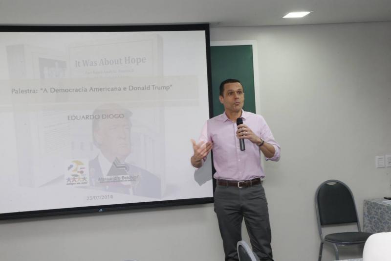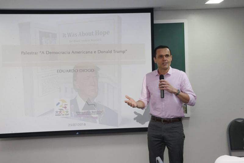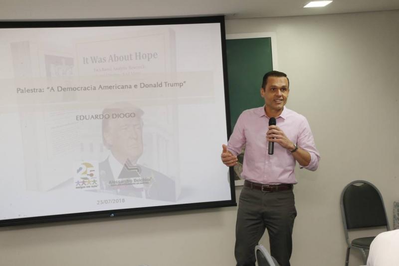 Durante reunião do corpo de conselheiros e diretoria do projeto Amigos em Ação, os anfitriões receberam para um almoço o advogado, escritor e ex-secretário do Planejamento e Gestão do Governo do Estado do Ceará, Eduardo Diogo, no auditório da imobiliária Alessandro Belchior, para falar sobre a democracia americana e a figura do presidente Donald Trump, tema central do seu livro “It Was About Hope”. Na ocasião, Eduardo se aprofundou na compreensão do modelo eleitoral da maior economia do mundo e nos motivos que levaram a vitória de Trump na eleição de 2016. Quem esteve por lá saiu rasgando elogios ao autor, que vai lançar a publicação da editora Cidatel em setembro, na versão em português. Aos cliques!