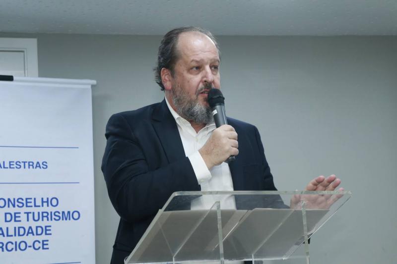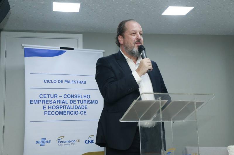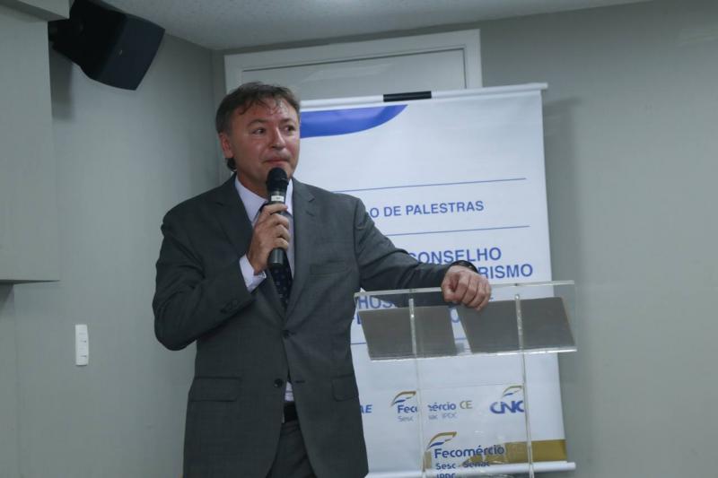 Atendendo a convite da presidente do Conselho Empresarial de Turismo e Hospitalidade (Cetur) da Fecomércio-CE, Circe Jane Teles da Ponte, o presidente da Associação Brasileira de Empresas Aéreas (Abear), Eduardo Sanovicz, deu um rasante por Fortaleza para participar do Ciclo de Plestras da entidade, onde falou sobre os rumos do setor aéreo brasileiro, bem como sobre as novidades surgidas no turismo do Ceará, como a escolha de Fortaleza para sediar o hub da Air France-KLM no Nordeste. O encontro reuniu grandes nomes do trade turístico cearense no auditório da Fecomércio.