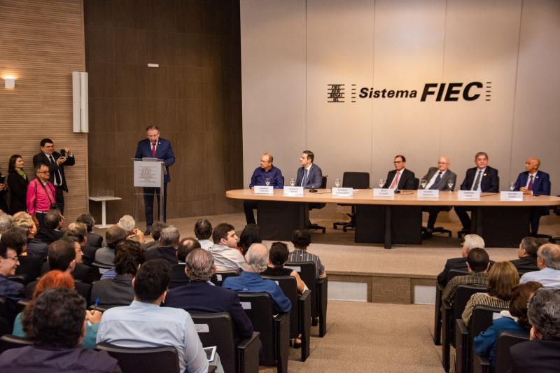 Atual gestor da Federação das Indústrias do Estado do Ceará, Beto Studart conduziu a eleição da nova diretoria plena, conselho fiscal e delegados representantes junto ao conselho da CNI, na Casa da Indústria. A chapa única “FIEC Unida”, liderada pelo atual diretor administrativo da instituição Ricardo Cavalcante, foi eleita por aclamação pelos delegados representantes de 39 sindicatos filiados. Na ocasião, Beto reconheceu o total apoio e confiança que sempre teve em seu diretor administrativo que, a partir de setembro, conduzirá os destinos da FIEC. “Amigo Ricardo, eu disse ao assumir que minha gestão ia ficar na história e ficou. E digo agora, com a certeza da missão cumprida, estou convicto de que você e sua equipe farão uma gestão melhor ainda, porque a estrada está pavimentada. Serão muito bem-sucedidos. Você tem tudo para dar um show, pois tem vocação para o exercício do coletivo, sensibilidade para a coisa pública e tino para a administração”, disse Beto Studart. O presidente eleito destacou a força da união e da parceria com Beto Studart e se disse inspirado pelo exemplo de seu antecessor, prometendo trabalhar para manter a FIEC como uma referência nacional. Confira os flashes!