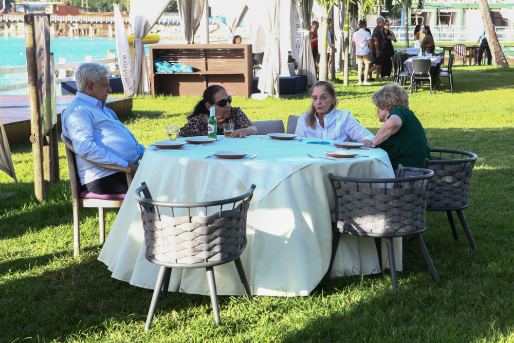 A programação musical ajudou a compor o cenário: instrumentais, vozes femininas e sets suaves acompanharam o ir e vir das mesas, reforçando a atmosfera de quem sabe onde estar quando o tempo desacelera. Uma pausa com vista para o mar e boas companhias.