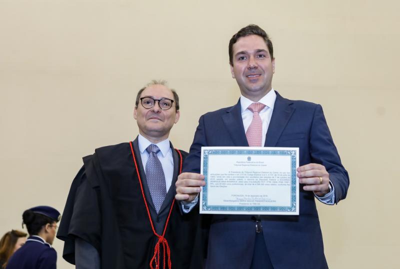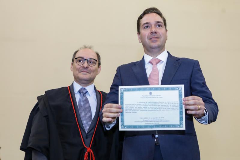 O governador do Ceará, Camilo Santana, e a vice-governadora Izolda Cela foram diplomados pelo Tribunal Regional Eleitoral do Ceará em concorrida solenidade realizada no Centro de Eventos do Ceará. As duas grandes personalidades da política do Estado receberam seus diplomas por terem sido reconduzidos ao Poder Executivo cearense para o mandato 2019-2022, nas eleições realizadas em outubro deste ano, com 80% dos votos válidos. A solenidade aconteceu no Salão Jericoacoara do Centro de Eventos, presidida pela desembargadora Maria Nailde Pinheiro Nogueira, onde também foram diplomados os senadores eleitos, Cid Ferreira Gomes e Luis Eduardo Girão; bem como dos 46 deputados estaduais e 22 deputados federais escolhidos nas Eleições 2018. Em sua fala, Camilo Santana agradeceu a confiança do eleitorado e falou sobre as ações para o ano de 2019. “Pretendo anunciar em breve um conjunto de medidas que fizemos nesses últimos dois meses, tanto do ponto de vista interno do Governo, como de leis aprovadas pela Assembleia Legislativa, a exemplo da reforma administrativa, para que a gente possa entrar o ano de 2019 garantindo que o Estado mantenha o equilíbrio fiscal e sua capacidade de investimento”, disse o Governador. Aos flashes!
