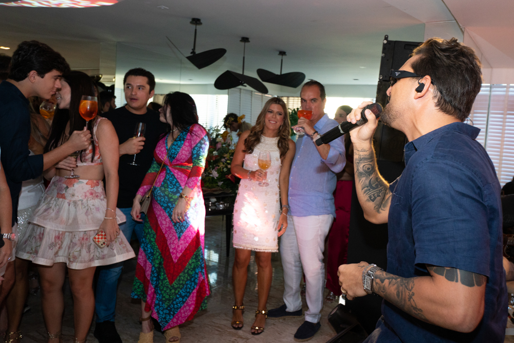 Na Beira-Mar de Fortaleza, o sábado do Fortal teve endereço certo para quem circula entre os bastidores da folia: o apartamento de Marina e Léo Albuquerque, palco do tradicional Mimofolia. A cada ano, o casal comanda o esquenta que reúne amigos e nomes do circuito em torno de música, leveza e vista para o mar. Nesta edição, quem deu o tom da festa foi a Banda Eva, que, na véspera, agitou o Camarote Mucuripe com sua energia.