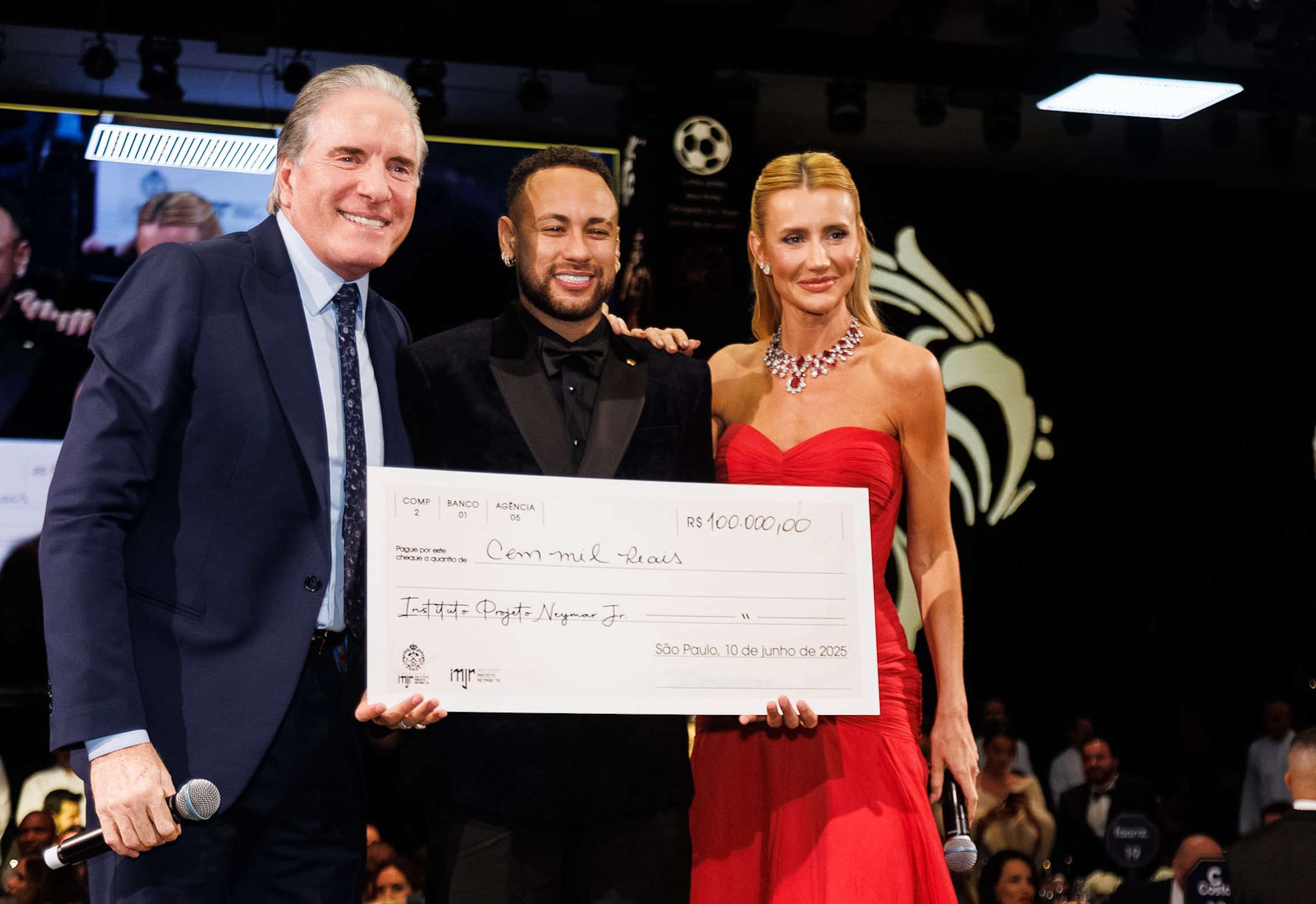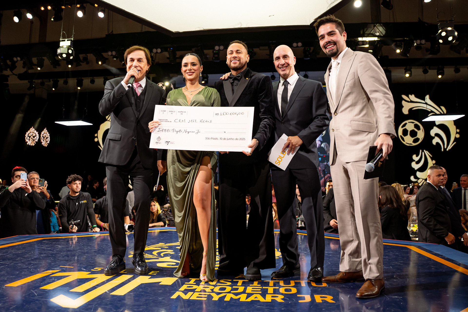 Personalidades do entretenimento, esporte, mundo empresarial e outras esferas se reuniram na Arena Mercado Livre, em São Paulo, para a 5ª edição do leilão beneficente do Instituto Neymar Jr. Realizado na última segunda-feira (10), o evento marcou os 10 anos da instituição, que atende crianças e adolescentes na Praia Grande (SP). A noite teve apresentação de Ana Castela, Ratinho, Tom Cavalcante e do próprio Neymar, além de show de Alexandre Pires. Entre os lotes: experiência com Vini Jr., partida de videogame com Neymar, camisa autografada por Pelé e uma coroa avaliada em mais de R$ 1 milhão.