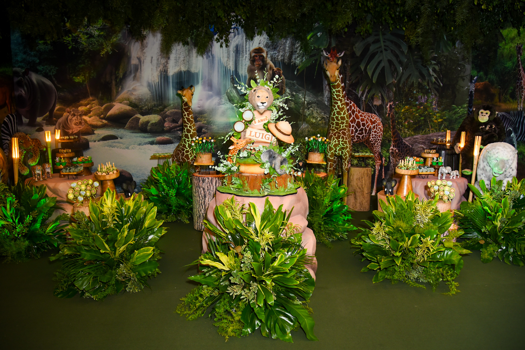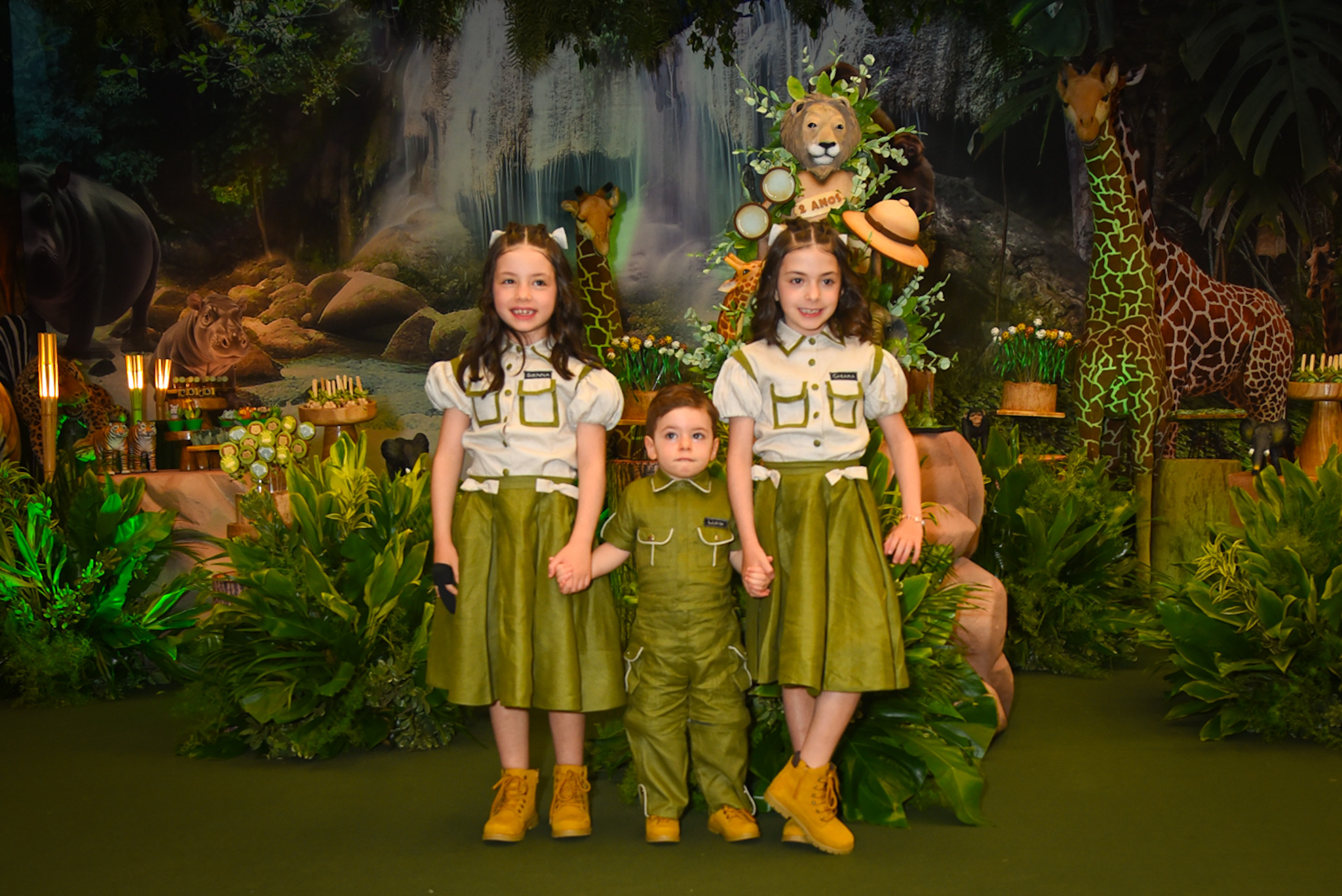 Nesta terça-feira (19), Fabiana Justus, recebeu amigos e familiares em São Paulo para comemorar o aniversário de 2 anos do filho caçula, Luigi. A influenciadora, que também é mãe das gêmeas Chiara e Sienna, de 6 anos, celebrou a data ao lado do marido Bruno Levi D’Ancona em uma produção deslumbrante assinada por Andrea Guimarães. O cenário transportava os convidados para um verdadeiro safári, com entrada em formato de boca de leão, mesa de bolo cercada por folhagens e animais cenográficos. Doces personalizados, guardanapos presos por argolas com elefantes e lembrancinhas em forma de mochilas e pelúcias completaram o clima lúdico e sofisticado da celebração.