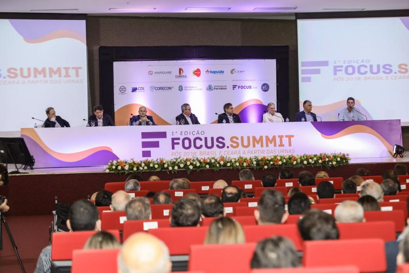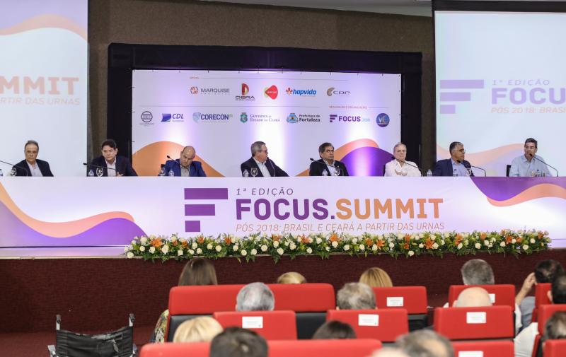 Evidenciando todo seu prestígio e credibilidade, o jornalista Fábio Campos, editor do site Focus. jor, realizou a primeira edição do Focus Summit, que teve como tema: “Pós 2018: Brasil e Ceará após as urnas”. Reunindo cerca de 500 pessoas no auditório da Assembleia Legislativa para ouvir os senadores eleitos Cid Gomes e Eduardo Girão, o senador Tasso Jereissati, o prefeito Roberto Cláudio, o empresário José Carlos Pontes, presidente do Grupo Marquise, e o vice-presidente do Grupo M. Dias Branco, Geraldo Luciano de Mattos Júnior., o encontro de cúpula trouxe para o centro do debate discussões sobre o novo cenário político e administrativo do País. Durante o meeting Cid e Tasso trocaram afagos, e mostraram como estão afinados para a criação de um bloco de oposição “responsável” ao governo Bolsonaro no Senado, que deve ser anunciado amanhã. Cid também afirmou que Tasso é seu candidato à Presidência do Senado.