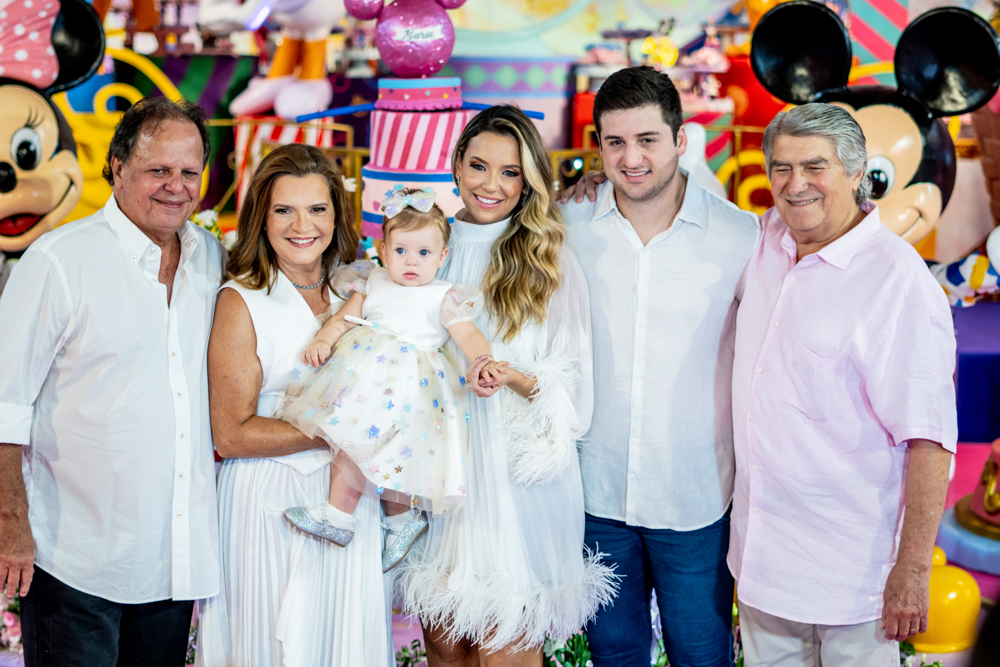 Transbordando felicidade, os papais Fernanda Levy e Omar Macêdo celebraram o primeiro aninho da herdeira Maria com uma bem-cuidada festa reunindo baixinhos e altinhos no Oba Lá Lá Buffet. Tendo como tema o mundo da Disney, o lúdico espaço foi transformado em um cenário de sonhos com uma decoração repleta de personagens como Mickey, Minnie, Pato Donald etc. A sessão parabéns foi marcada por muita alegria e os pequenos se divertiram bastante com diversas brincadeiras e musiquinhas no maior alto-astral. No script, decoração por Emanuela Alencar, cerimonial de João e Maria Cerimonial e bolo e chocolates por Ana Calíope. Confira nos flashes a seguir quem pintou por lá para abraçar o pequeno aniversariante!