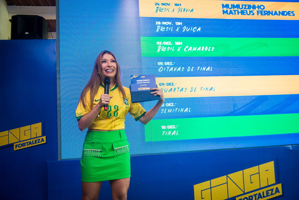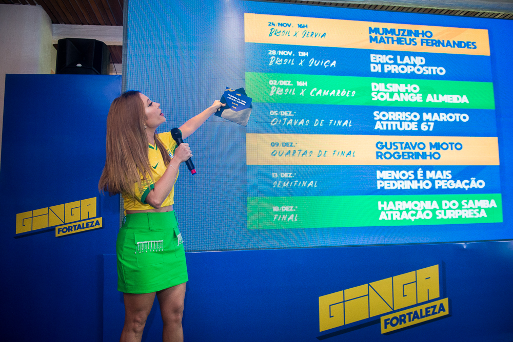 Na quarta-feira (05) o Festival Ginga Brazil realizou no Zoi Restaurante, uma coletiva de imprensa para anunciar os nomes da música que prometem agitar a torcida pelo hexa em mega arena montada no Colosso Fortaleza. Os nomes revelados pelo evento são: Matheus Fernandes, Mumuzinho, Di Propósito, Eric Land, Solange Almeida, Dilsinho, Atitude 67, Sorriso Maroto, Rogerinho, Gustavo Mioto, Pedrinho Pegação, Menos É Mais, e uma atração surpresa. Os shows acontecem de acordo com os jogos do Brasil na Copa. Além disso, o evento terá pontos de inclusão para pessoas com deficiência e ações sociais para apoio ao projeto Taça das Favelas. Confira os clicks!