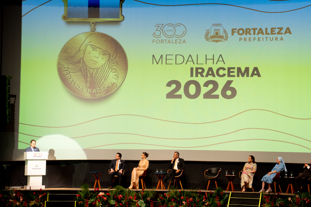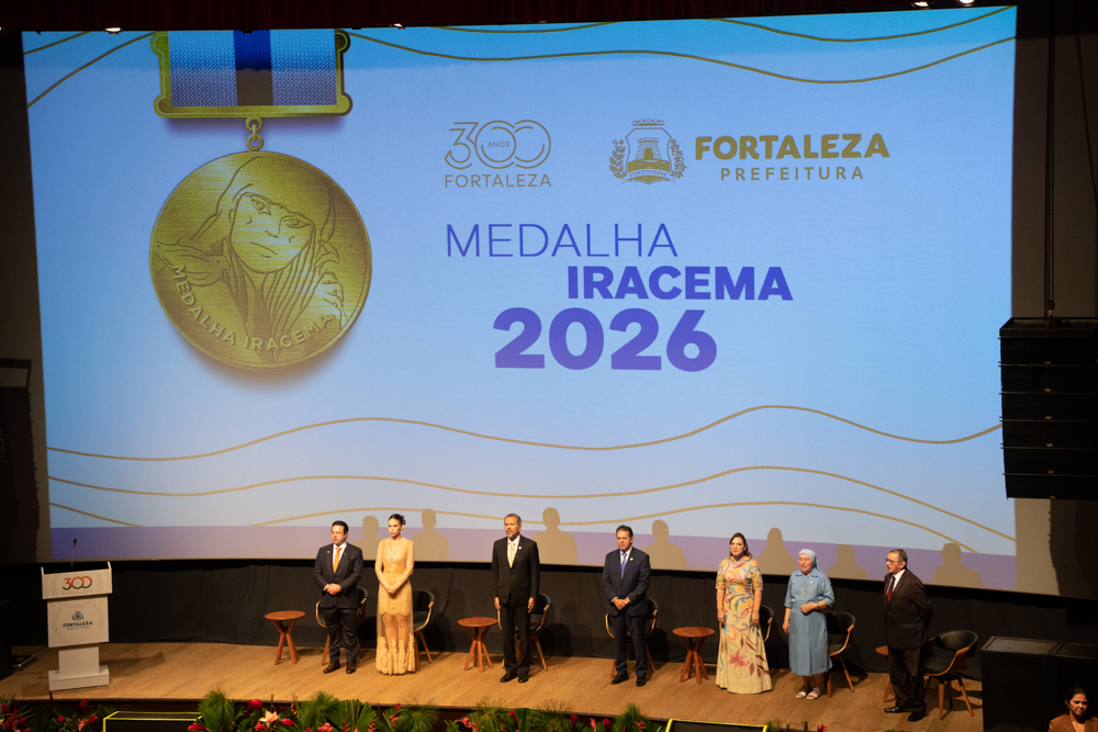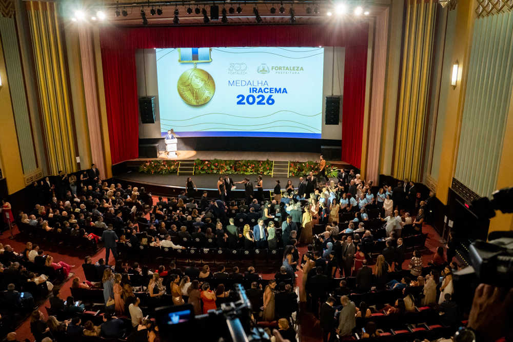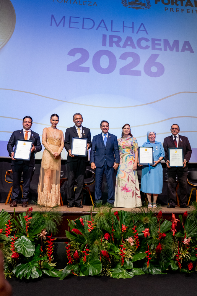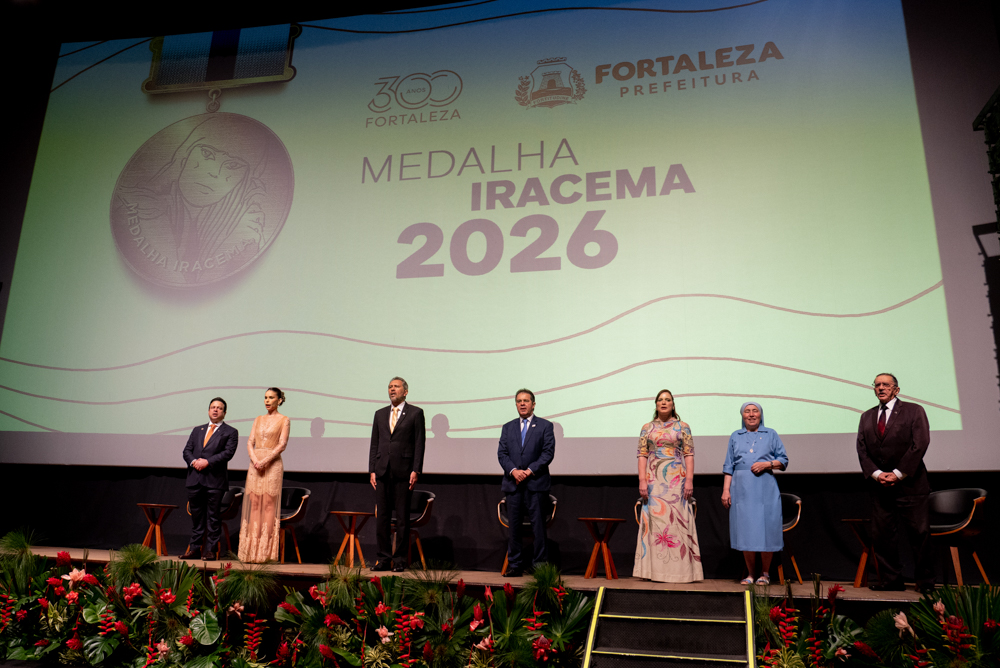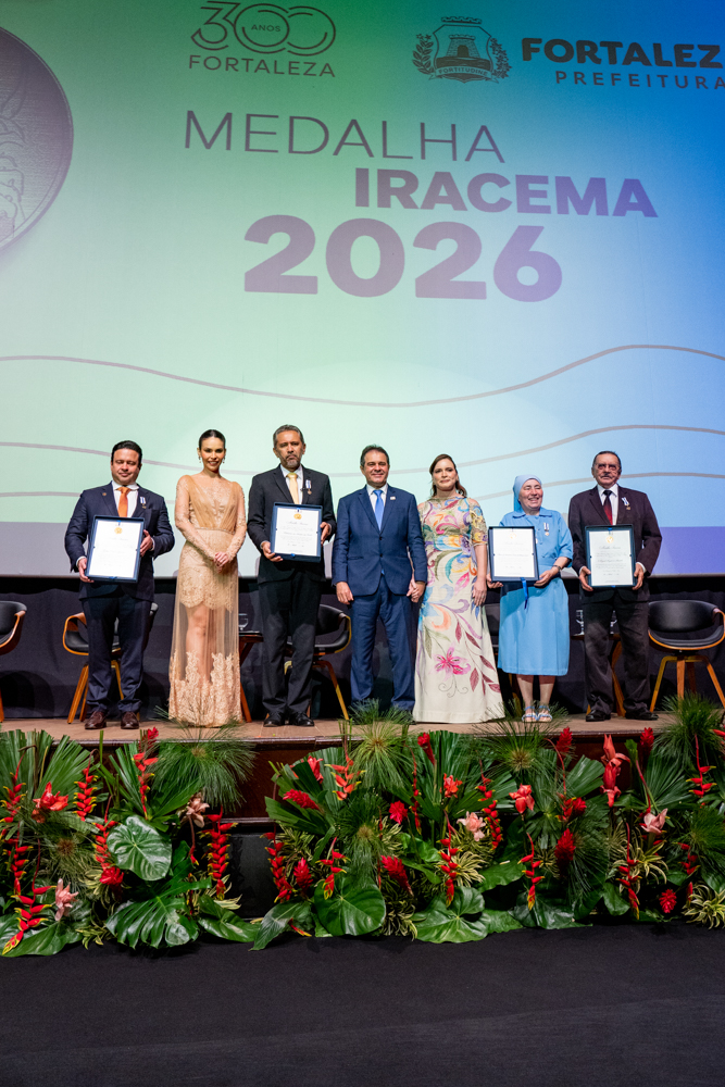 Sob o esplendor do Cineteatro São Luiz, localizado na Praça do Ferreira, Fortaleza inaugurou oficialmente as celebrações de seu tricentenário com a entrega da Medalha Iracema. A solenidade, realizada na noite de sexta-feira (10), abriu o Ano 300 homenageando personalidades e instituições que desempenham papéis determinantes na evolução social, política e econômica da Capital. Nesta edição, a mais alta honraria do Executivo Municipal foi conferida ao governador do Ceará, Elmano de Freitas, ao Grupo Edson Queiroz, à Irmã Maria da Conceição e ao pesquisador Miguel Ângelo de Azevedo (Nirez). O reconhecimento celebra desde a articulação institucional e o desenvolvimento industrial até a preservação da memória e o impacto humanitário que moldam a identidade fortalezense. A cerimônia projeta ainda o início de um calendário estratégico de atividades e entregas que percorrerão a cidade até abril de 2027. Confira os registros!