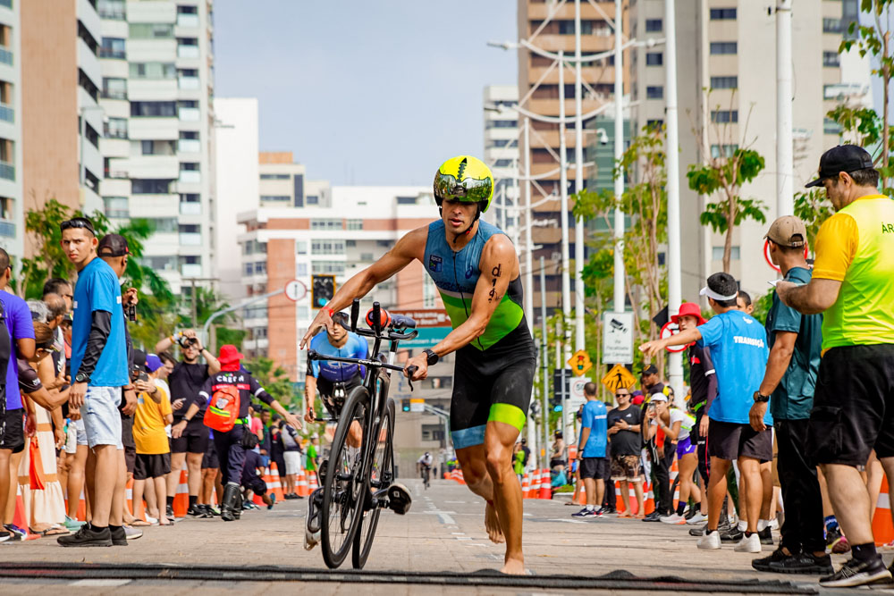 Fortaleza foi palco de mais uma edição do IRONMAN 70.3 neste domingo (25), atraindo aproximadamente 1.200 competidores de nove países para uma disputa de resistência e superação. A prova, conhecida por seus desafios, incluiu 1,9 km de natação, 90 km de ciclismo e 21,1 km de corrida, colocando à prova a preparação física e mental dos atletas. Além de testar os limites dos competidores, o evento também serviu como classificatória para o IRONMAN 70.3 World Championship 2025, que será realizado em Marbella, na Espanha, nos dias 8 e 9 de novembro do próximo ano. A competição reforça a importância de Fortaleza no cenário esportivo internacional, destacando-se como um destino privilegiado para grandes eventos esportivos. Confira nossa cobertura!