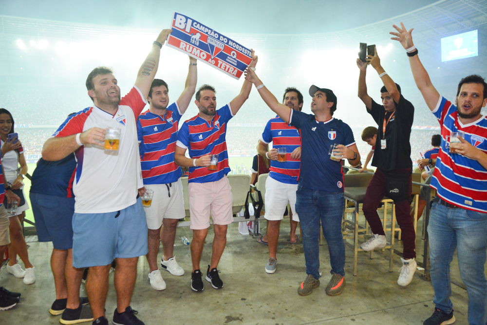 Omar Macêdo e Fernanda Levy reuniram convidados pra lá de especiais em seu camarote na Arena Castelão para assistir a final da Copa do Nordeste. Com direito a bebidinhas by Brava Wine, show no intervalo e muita animação, essa turma saiu de lá com um sorriso de orelha a orelha ao ver o Leão do Pici rugir mais alto e bater o Sport por 1 a 0, faturando o bicampeonato da Copa do Nordeste. O Fortaleza marcou com Pikachu, de pênalti, em jogo marcado por queda de energia e confusão. A equipe estreia na Libertadores nesta quinta-feira, contra o Colo-Colo-CHI, na Arena Castelão.
