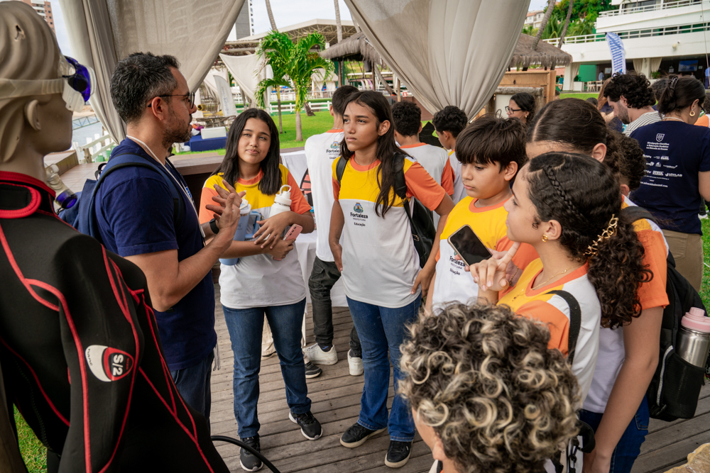 O Iate Clube de Fortaleza reuniu educadores, gestores públicos, pesquisadores e nomes ligados à pauta ambiental para o Fórum da Cultura Oceânica: o Currículo Azul na Região Nordeste, na sexta-feira (16). O encontro lançou luz sobre a importância do oceano para a formação cidadã, propondo reflexões sobre sua presença nos currículos escolares. Com painéis, apresentações e exposições ao longo do dia, o cronograma destacou experiências da Rede Escola Azul e projetos de inclusão e acessibilidade à educação ambiental marinha, alinhados à Agenda 2030. O comodoro Pompeu Vasconcelos recepcionou os convidados ao lado de Tetê Matos, idealizadora do Movimento A e sócia da ATHĒNÁ Canoagem, que também integra a articulação do fórum. A programação contou, ainda, com a participação da professora Lidriana Pinheiro, diretora do Instituto de Ciências do Mar (Labomar/UFC), do secretário nacional de Ciência e Tecnologia para o Desenvolvimento Social, Inácio Arruda, e da professora Ozilea Bezerra Menezes, referência nacional em educação ambiental.