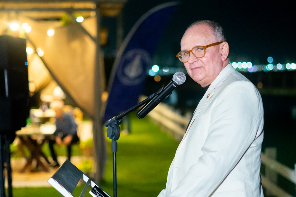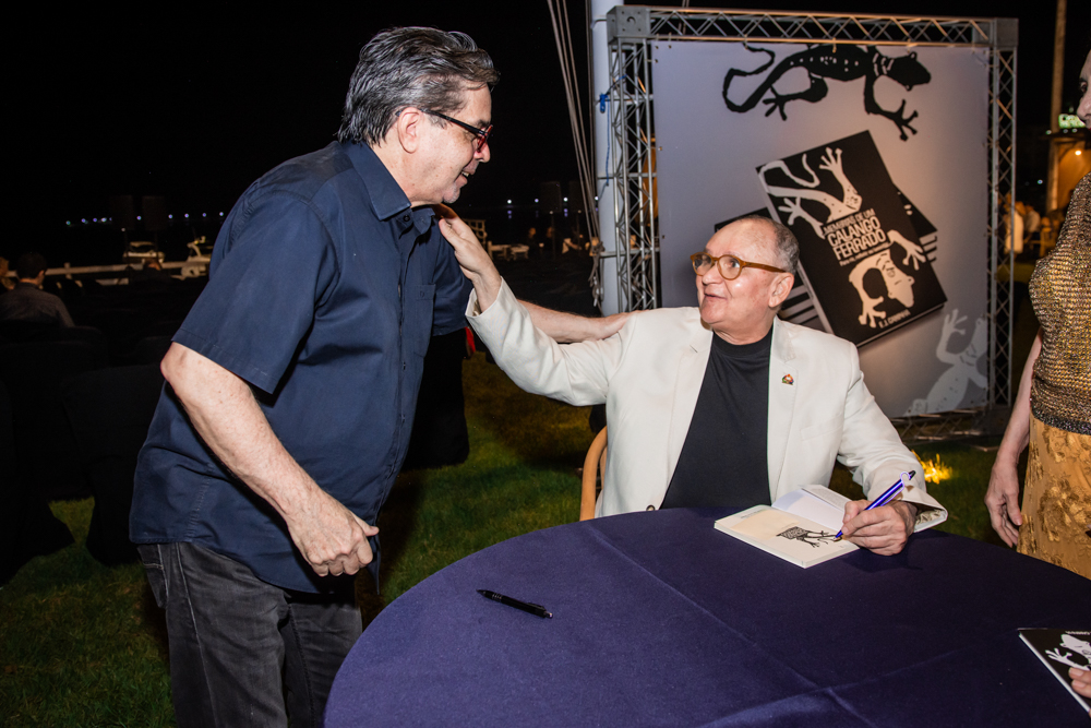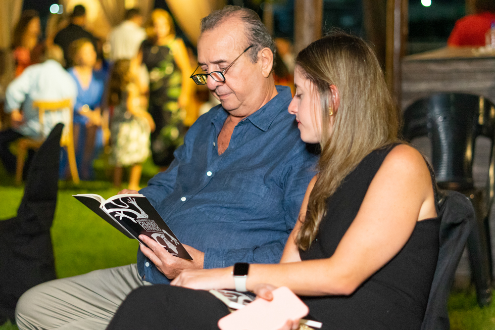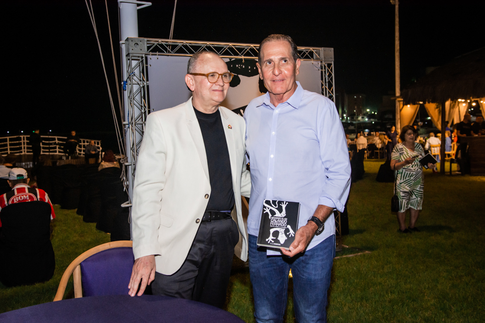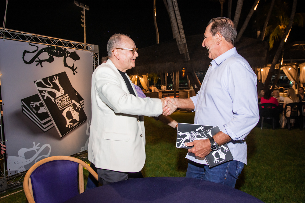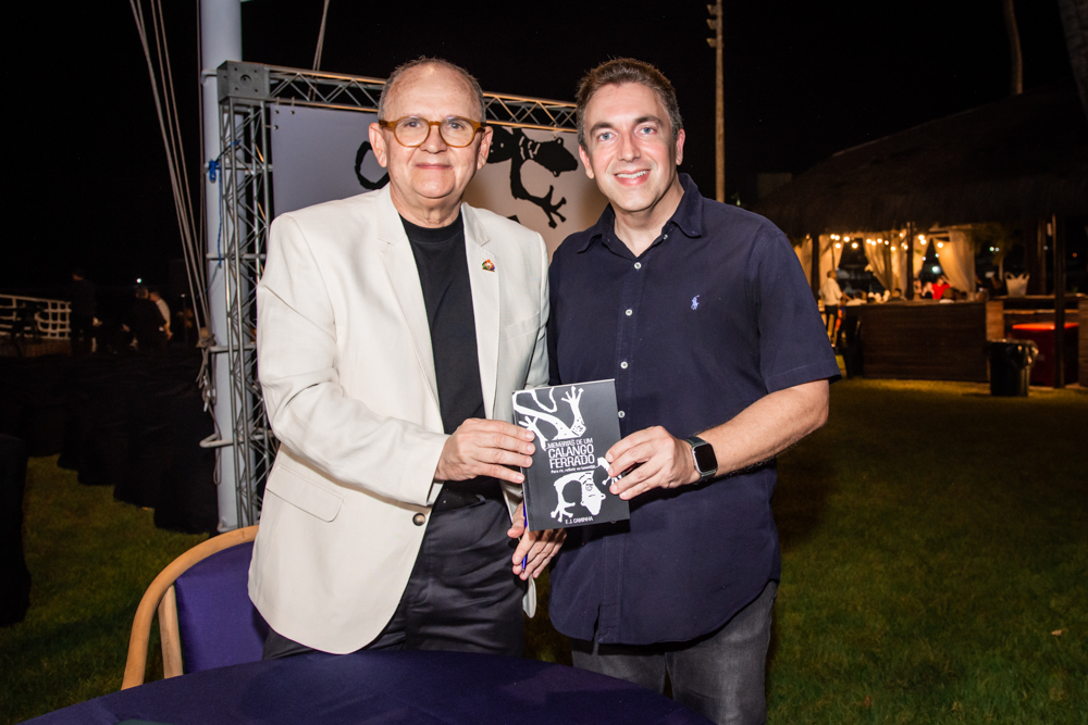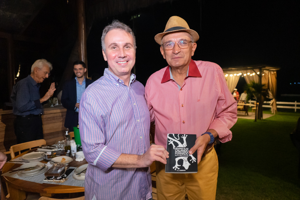 Francisco Caminha reuniu na sexta-feira (23), nomes de peso da política e da sociedade cearense na sessão de autógrafos de seu livro intitulado “Memórias de um Calango Ferrado!”, no Iate Clube de Fortaleza. A noite contou com uma apresentação da Orquestra Sons do Infinito e participação especial da cantora Karol Tavares, que faz parte do line-up semanal de atrações do clube mais exclusivo da capital cearense. Na ocasião, o comodoro Pompeu Vasconcelos deu as boas-vindas a todos, reforçando o compromisso do Iate Clube de incentivar eventos culturais. Além disso, durante o lançamento, João Soares Neto fez a apresentação do livro e o autor, Francisco Caminha, destacou algumas passagens da obra. Confira os registros!