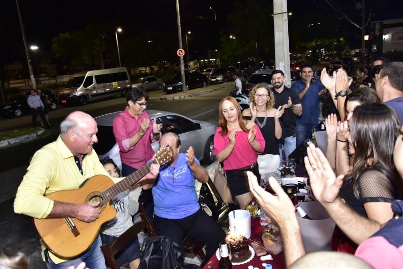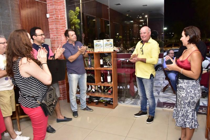 Cheia de boas ideias, Aucileia Araújo cuidou de tudo, nos mínimos detalhes, para garantir o sigilo e a alegria da festa surpresa que armou para festejar a nova idade do marido, José Ricardo Araújo Lima. Recém-chegado de viagem, o superintendente da Semace não conseguiu esconder a emoção com a presença e o carinho dos amigos que pintaram na Wineria Winebar para abraçá-lo. Cheers!