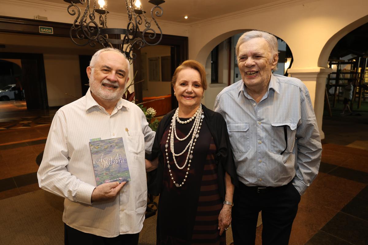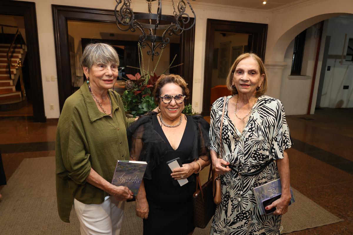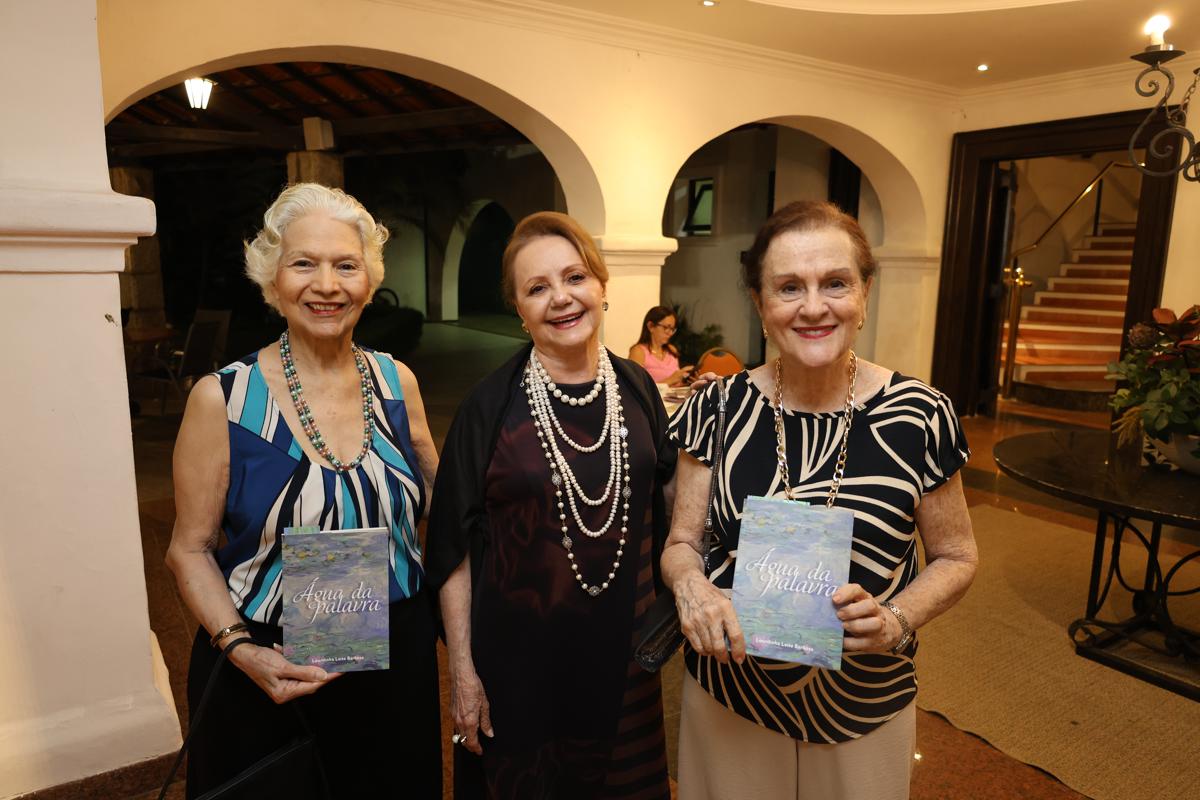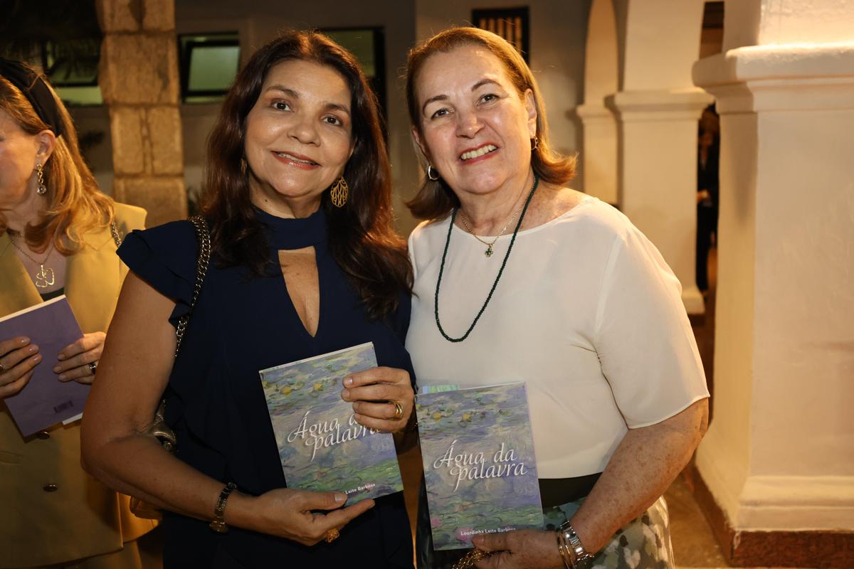 O Ideal Clube ganhou atmosfera literária, na quarta-feira (22), com o lançamento de “Água da Palavra”, obra que marca a estreia de Lourdinha Leite Barbosa na poesia. Dividido em seis eixos temáticos, o livro, prefaciado por Linhares Filho e com posfácio da professora Aíla Sampaio, foi celebrado por amigas da escritora, que deram voz e interpretação a cada capítulo da obra. Regine Limaverde, Nadja Ribeiro Moreira, Beatriz Alcântara, Anya Ribeiro, Ana Luísa Matos de Lima e Beatriz Jucá compartilharam leituras afetivas, em uma noite que reuniu nomes da cena cultural cearense e selou a chegada de Lourdinha aos poemas com delicadeza e brilho intelectual.